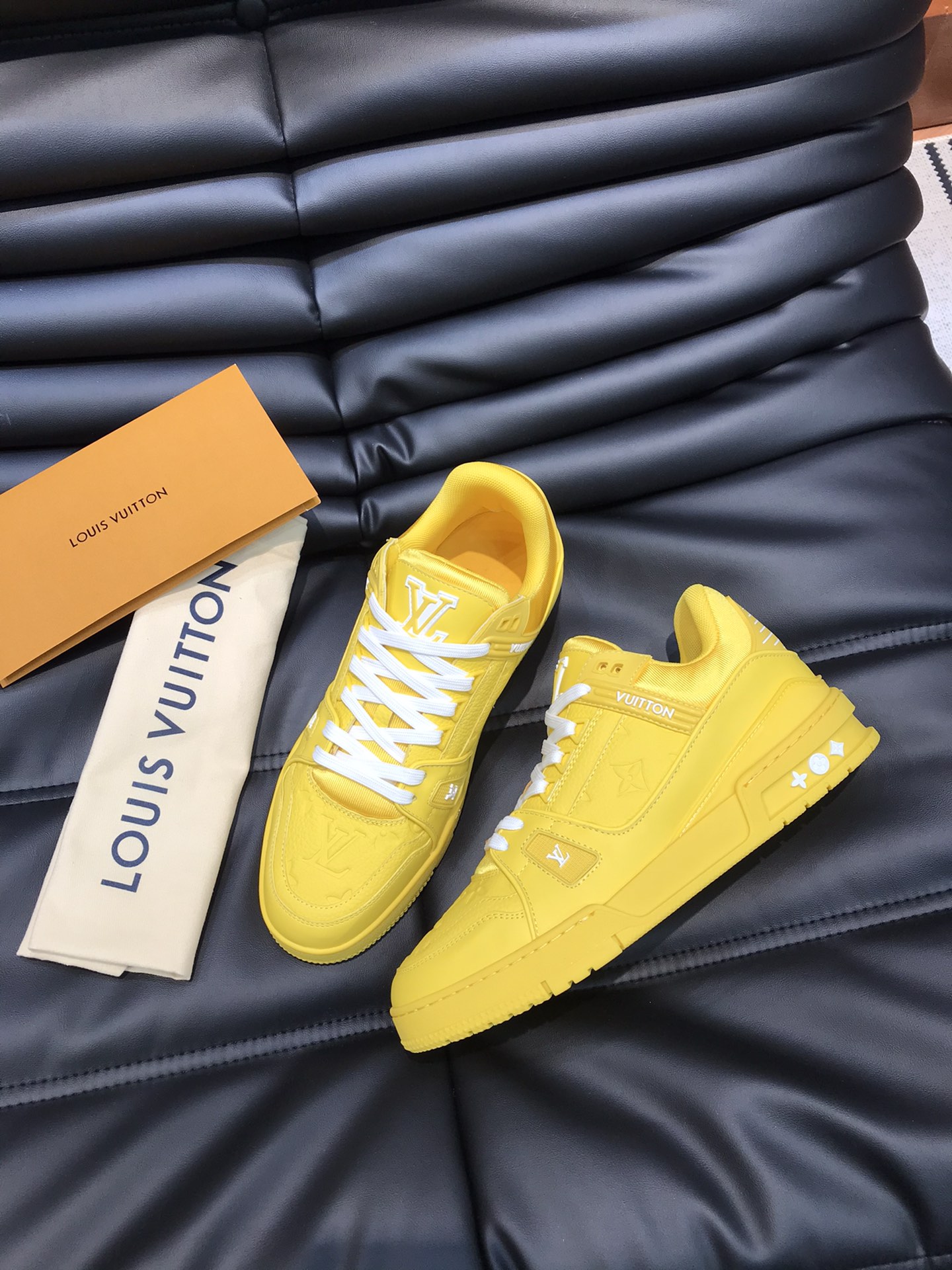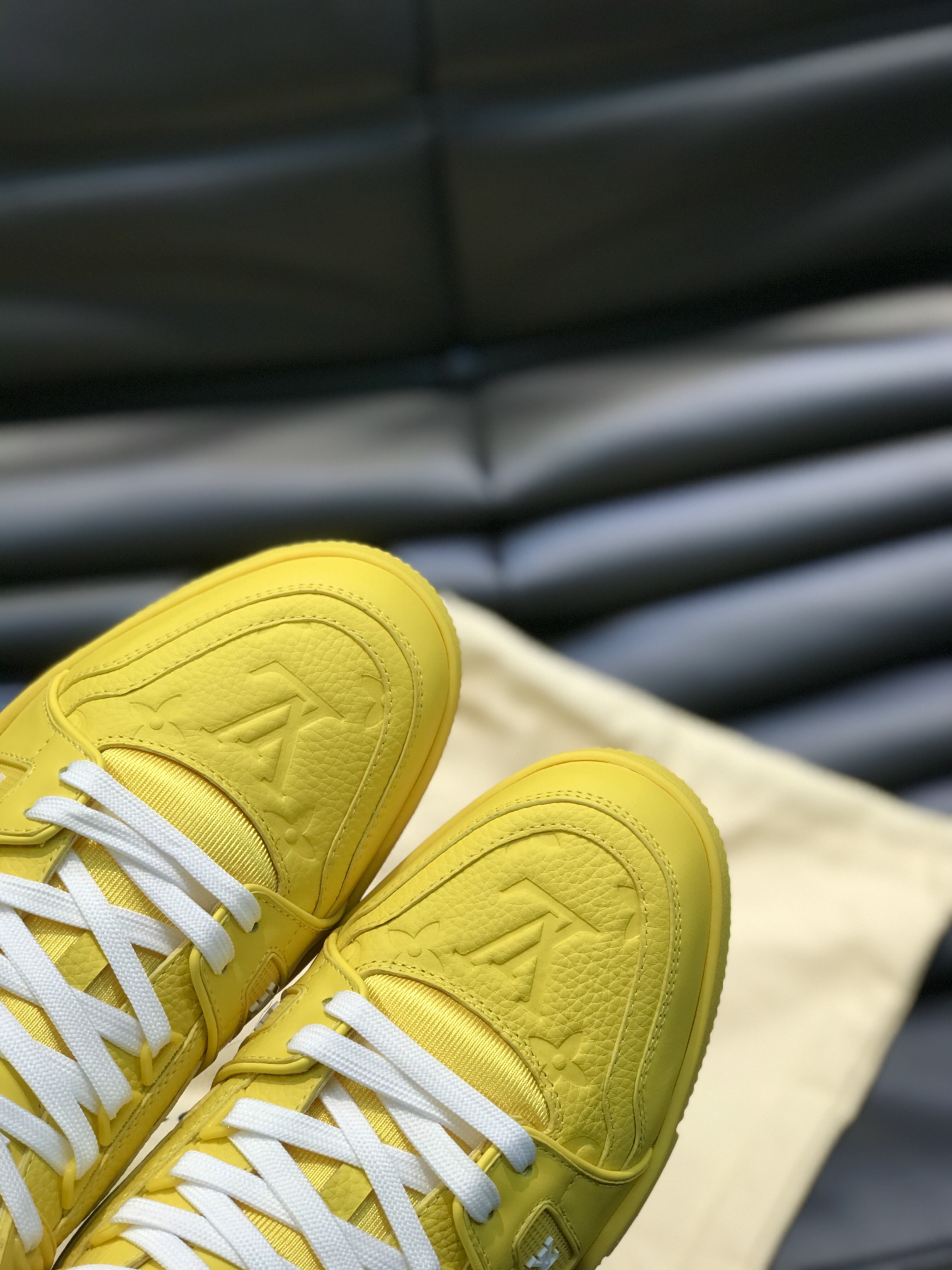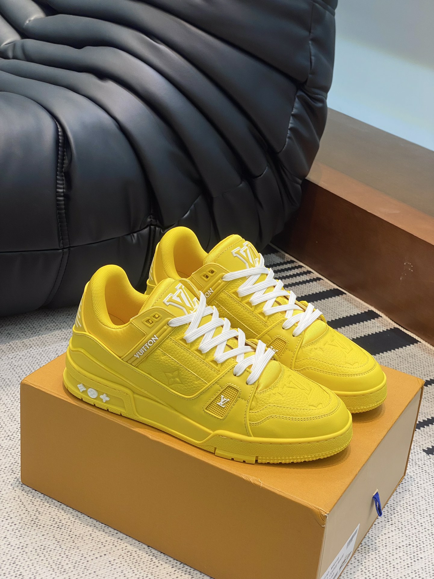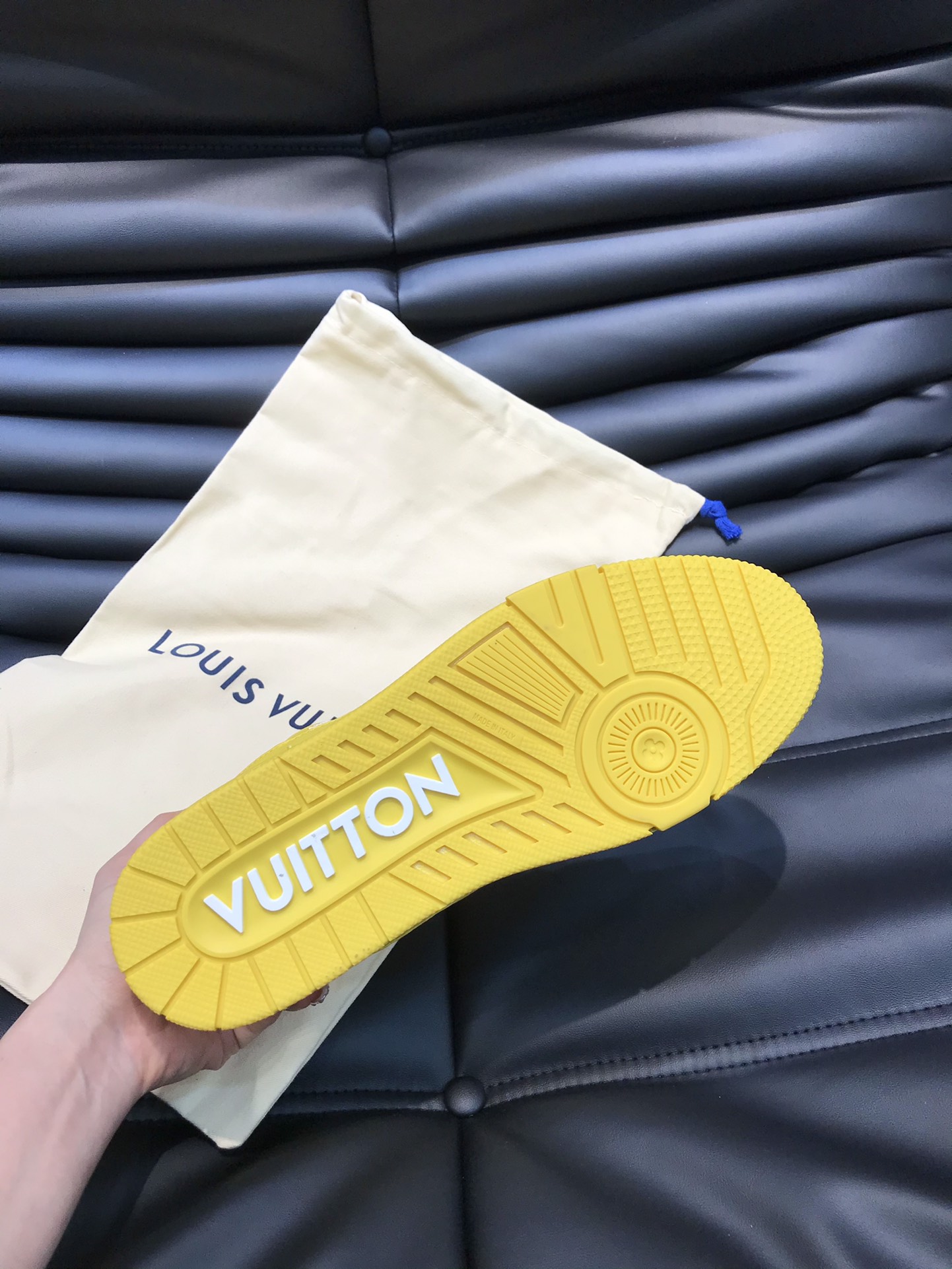 $229.10This LV Trainer is crafted from grained calfskin leather, paying homage to Virgil Abloh’s original classic design inspired by vintage baskets with vibrant colorways. The upper is adorned with rubber LV lettering and the Vuitton logo, while the Monogram floral pattern embellishes the technical rubber outsole. The original silhouette, designed by Virgil Abloh, showcases the inspiration of vintage baskets. Continuing the intricate upper design, the glued rubber outsole retains iconic elements, and the standard insole ensures continued comfort. Comes with original box and complete packaging!