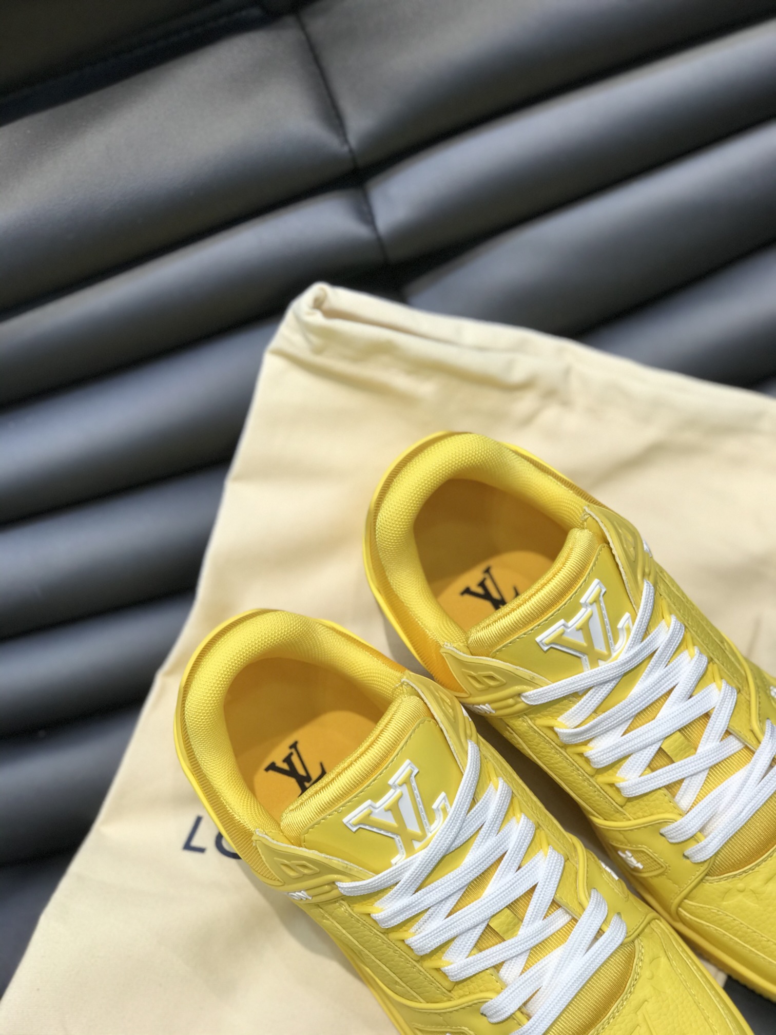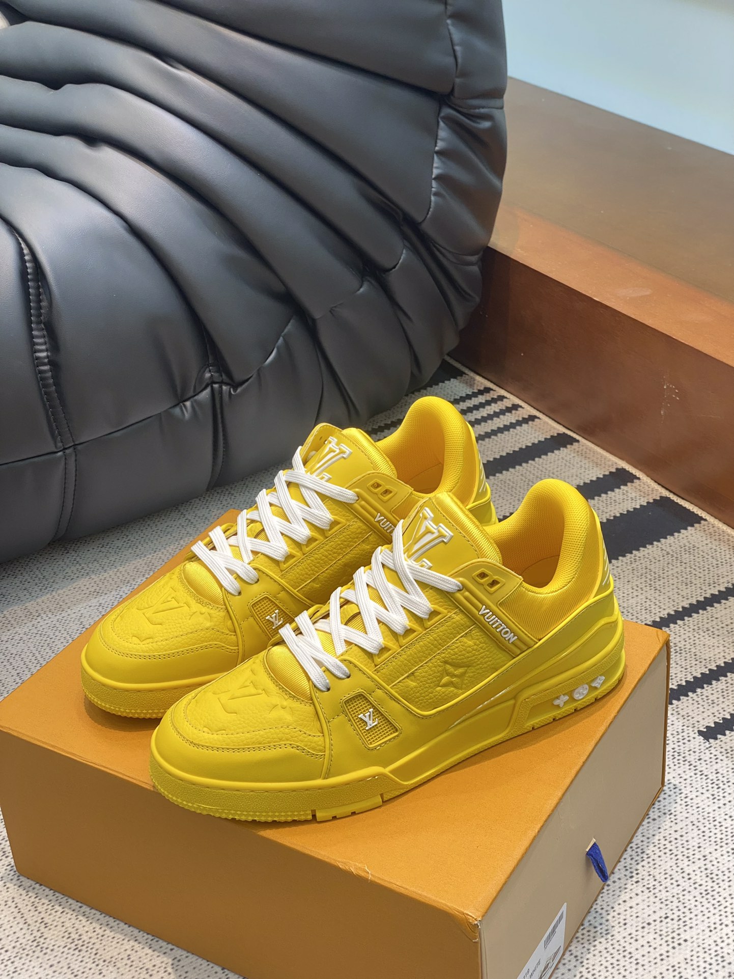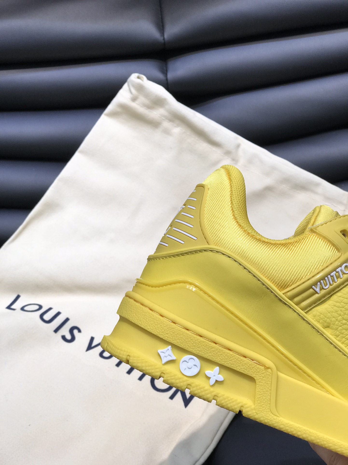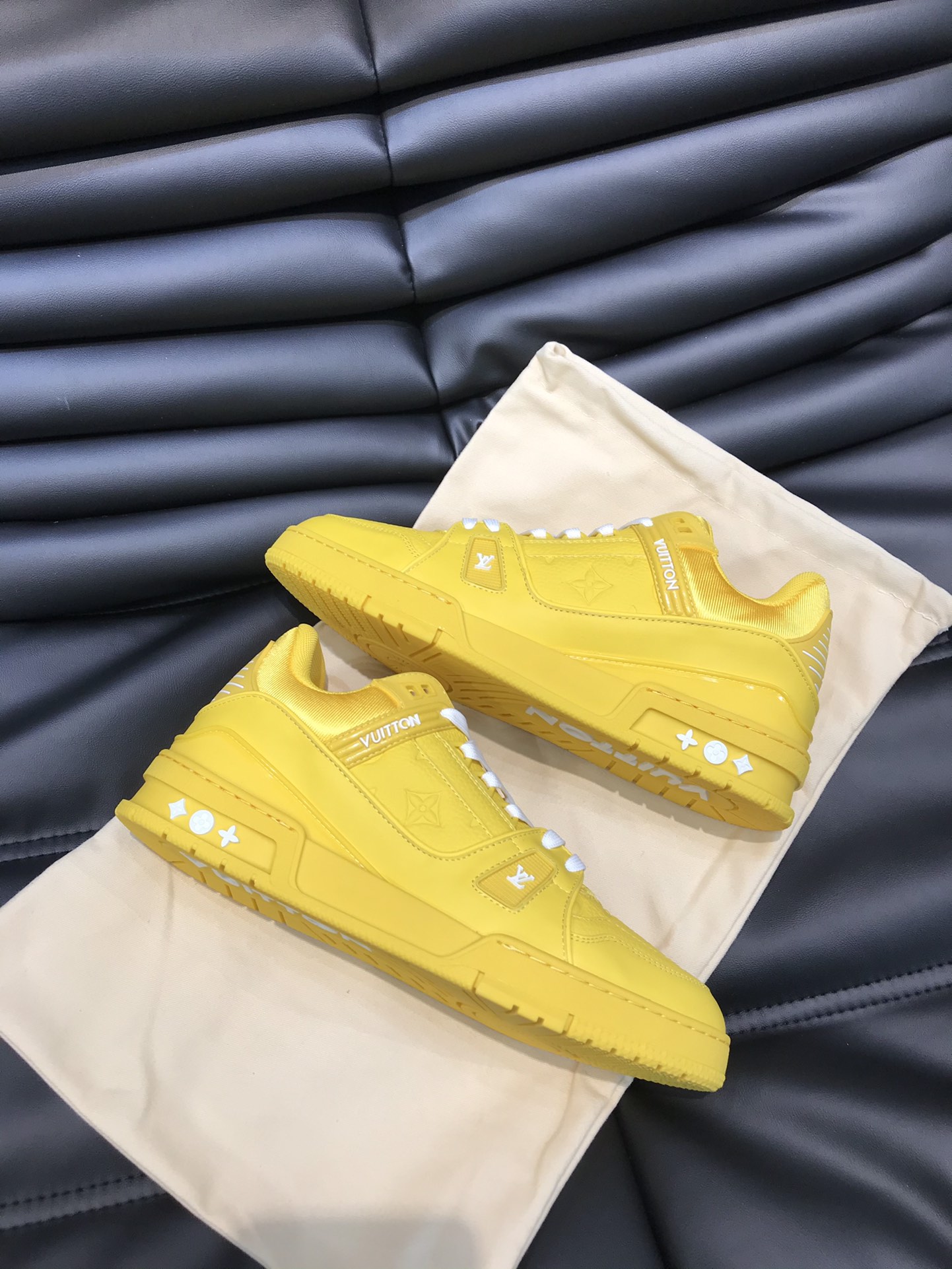 $229.10This LV Trainer is crafted from grained calfskin leather, paying homage to Virgil Abloh’s original classic design inspired by vintage baskets with vibrant colorways. The upper is adorned with rubber LV lettering and the Vuitton logo, while the Monogram floral pattern embellishes the technical rubber outsole. The original silhouette, designed by Virgil Abloh, showcases the inspiration of vintage baskets. Continuing the intricate upper design, the glued rubber outsole retains iconic elements, and the standard insole ensures continued comfort. Comes with original box and complete packaging!