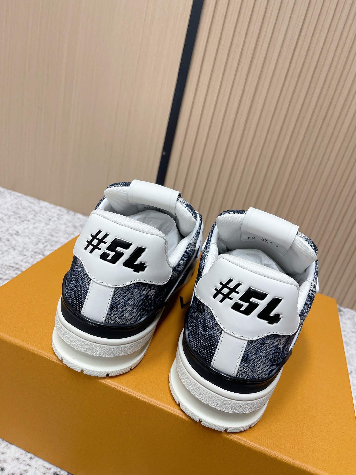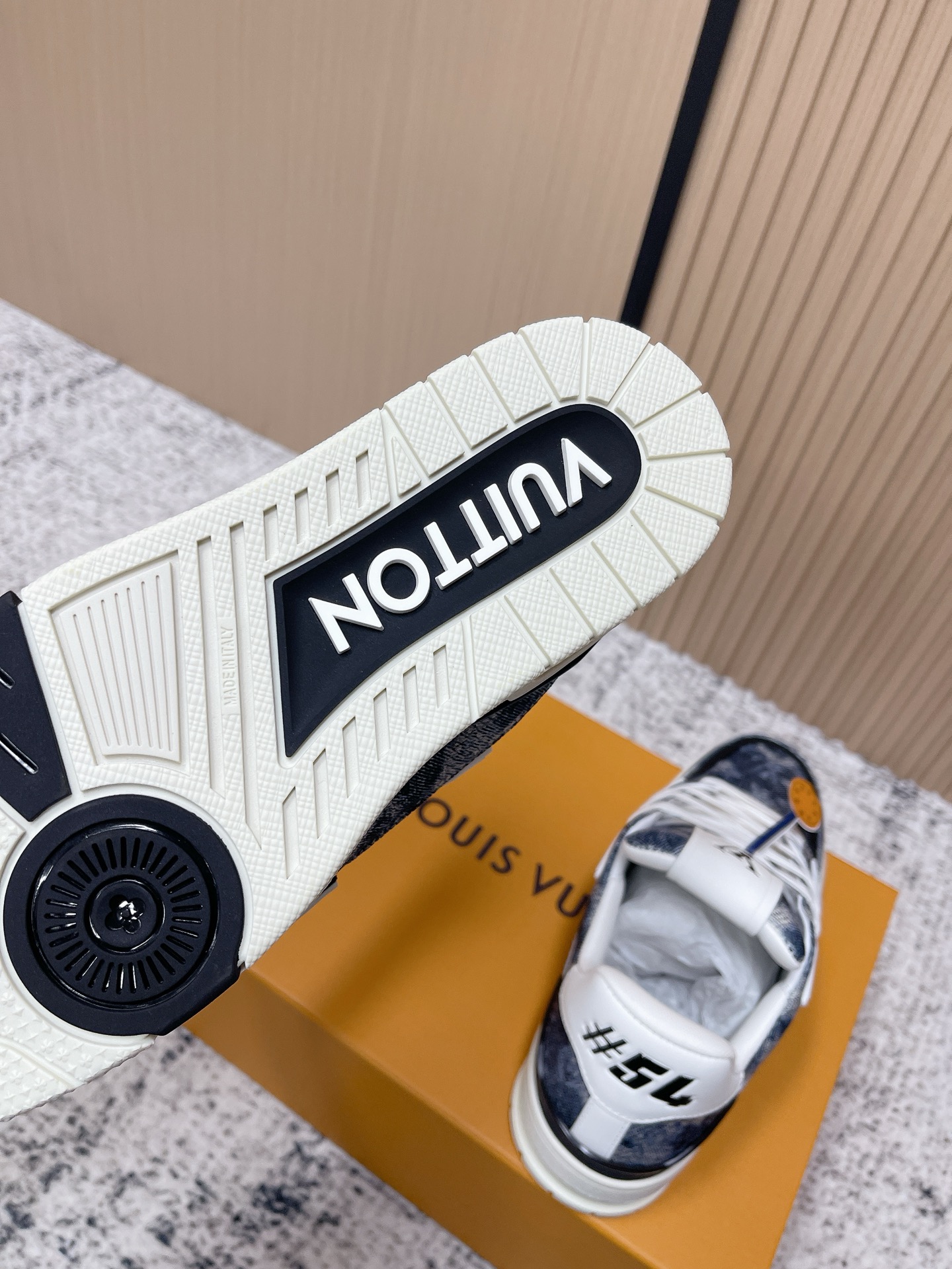 This LV Trainer was designed by the late Artistic Director Virgil Abloh, inspired by retro basketball shoes.