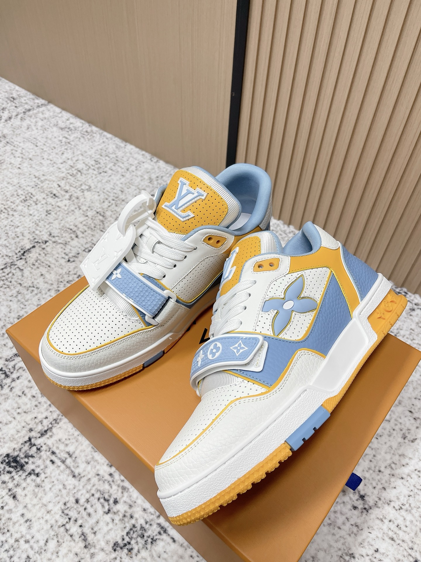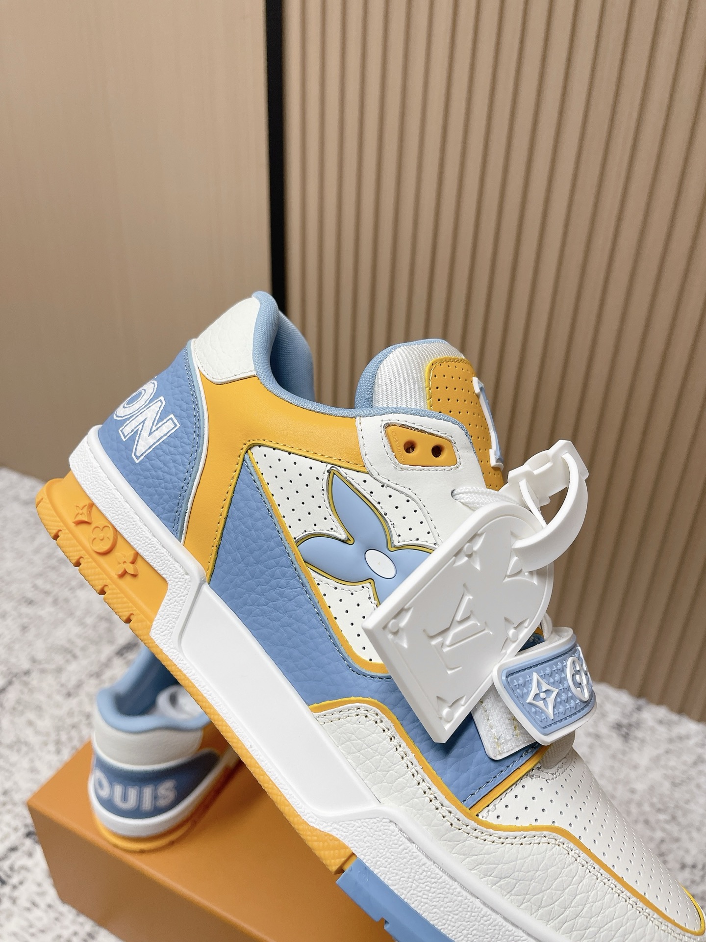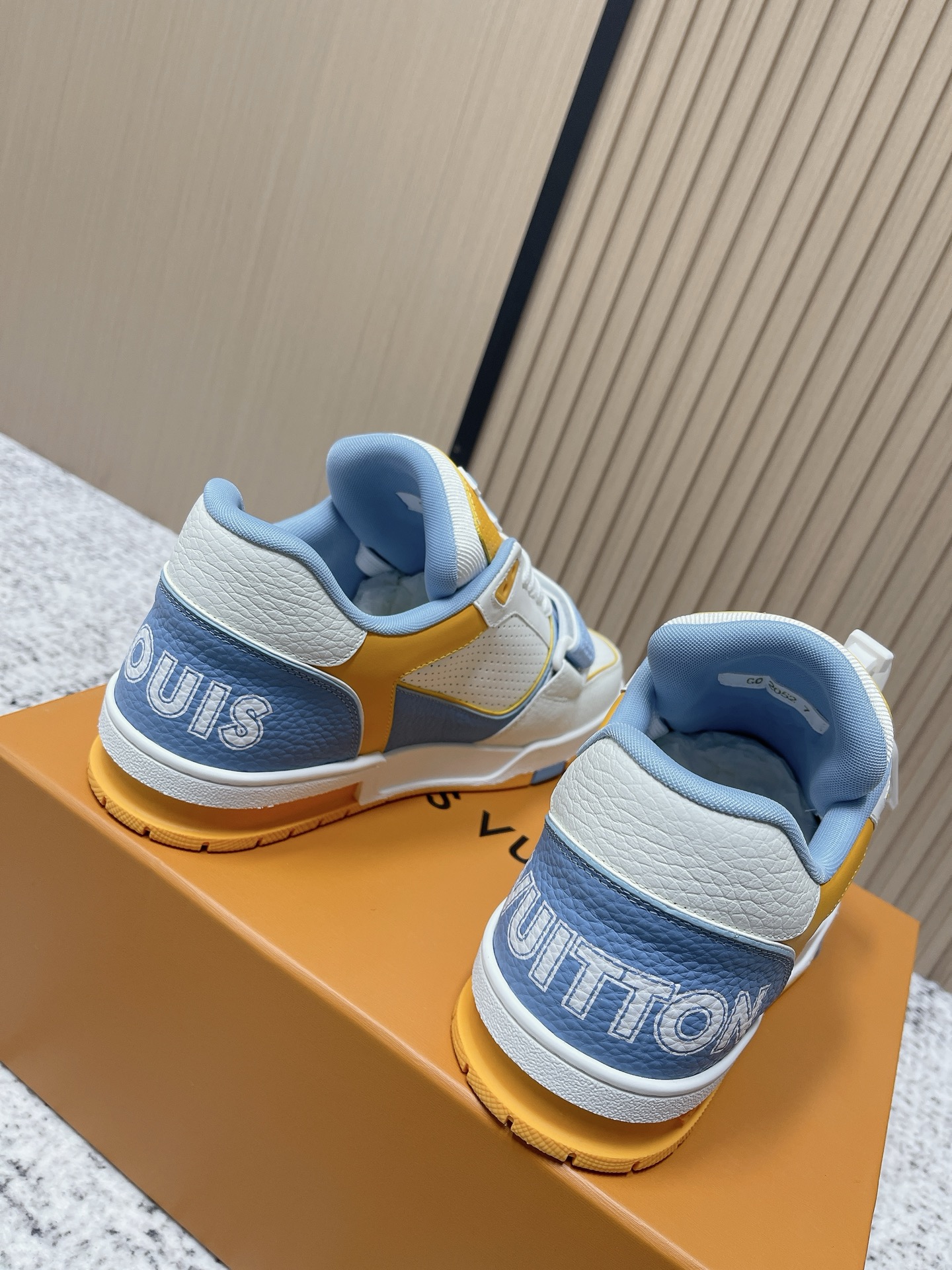 LV Trainer sneakers, colorway: white/blue/yellow.