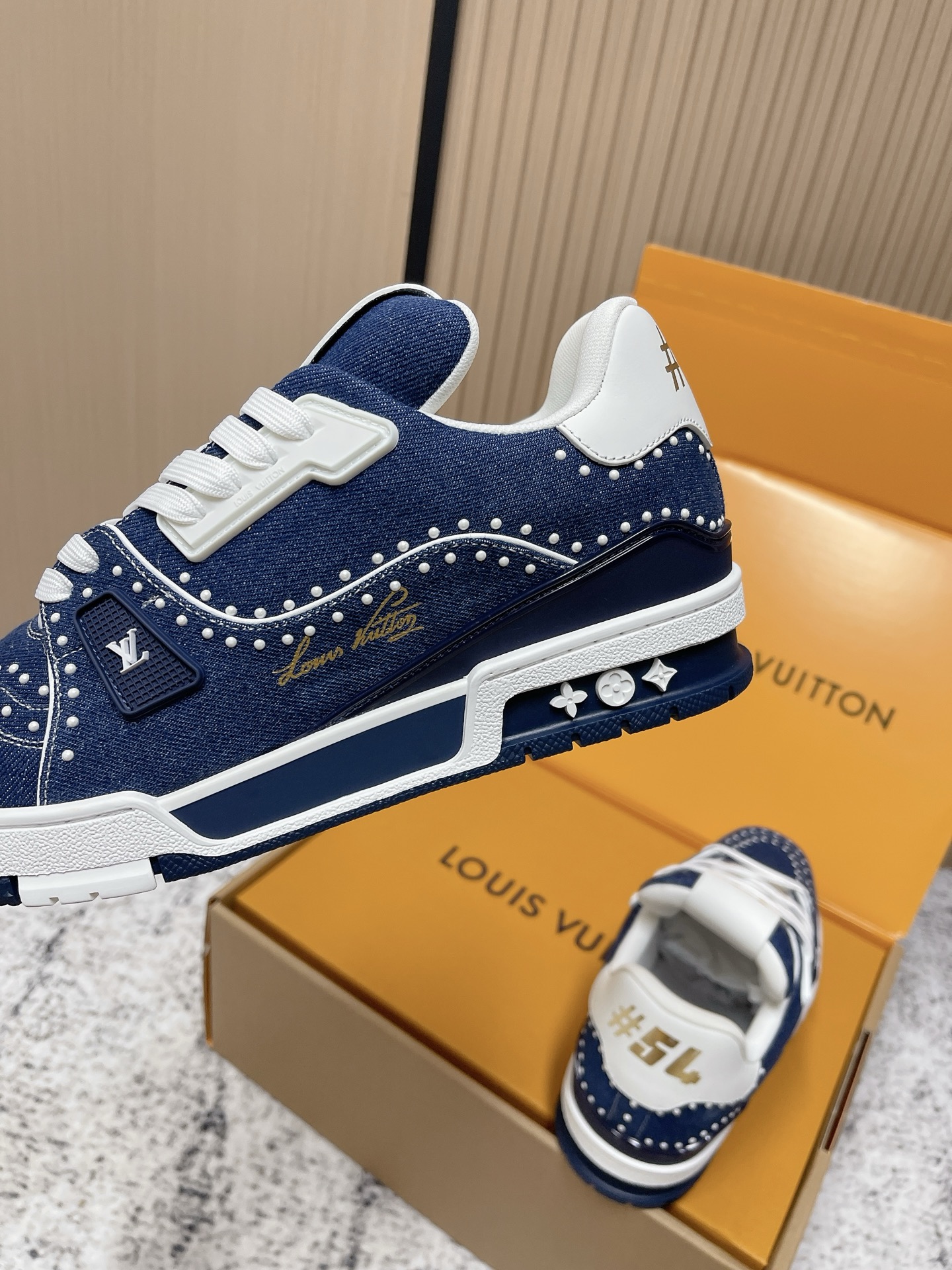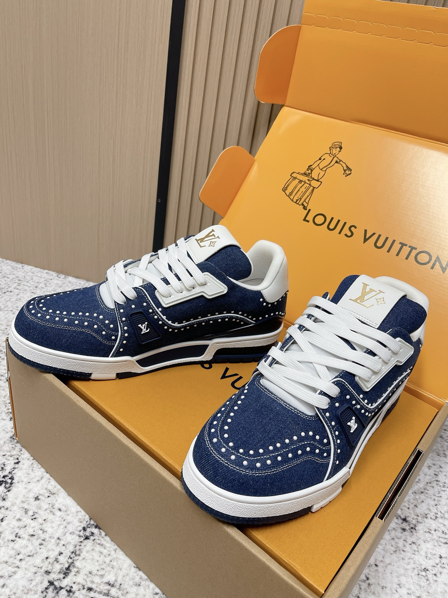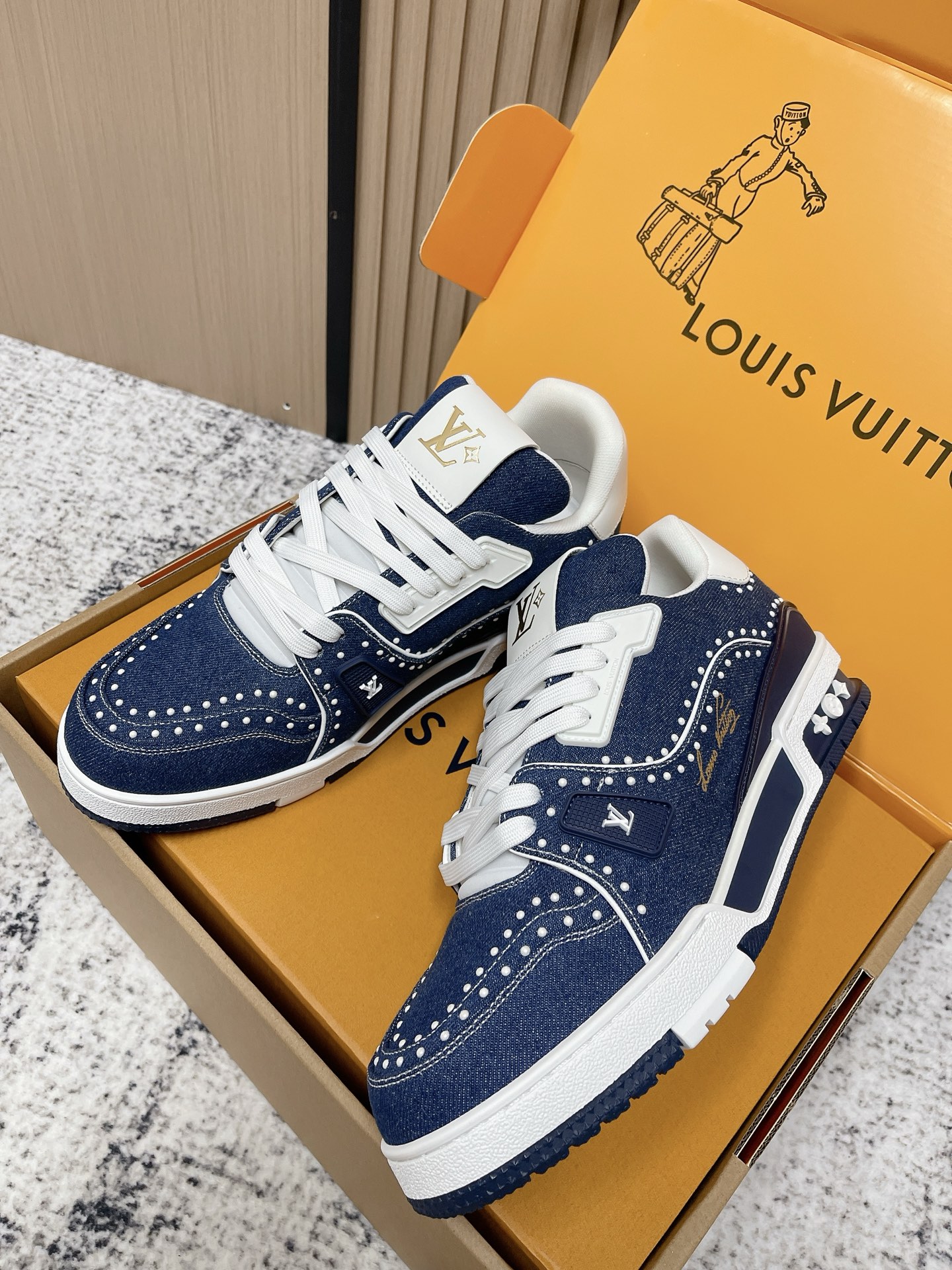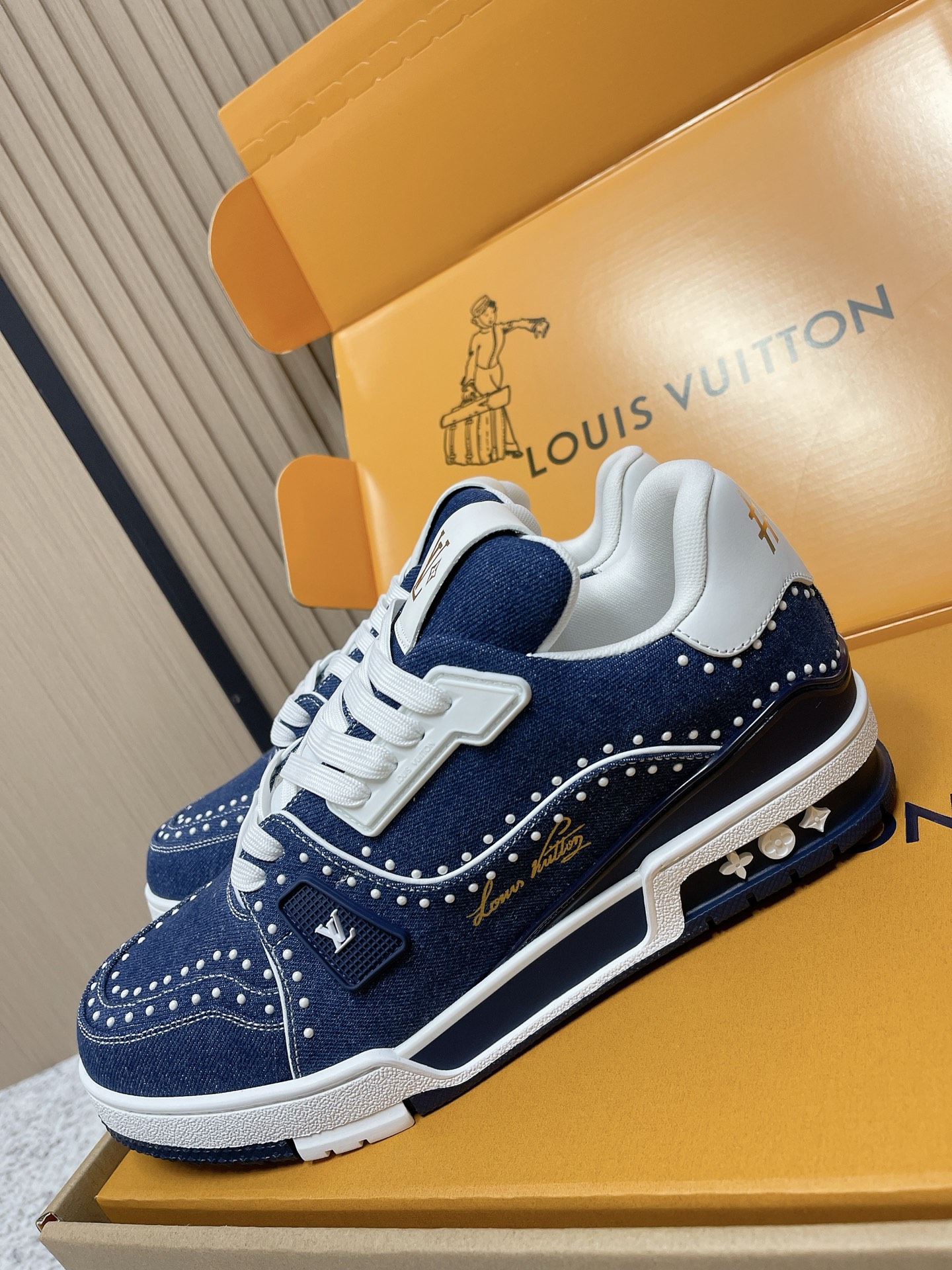 LV Trainer sneakers, in blue denim.