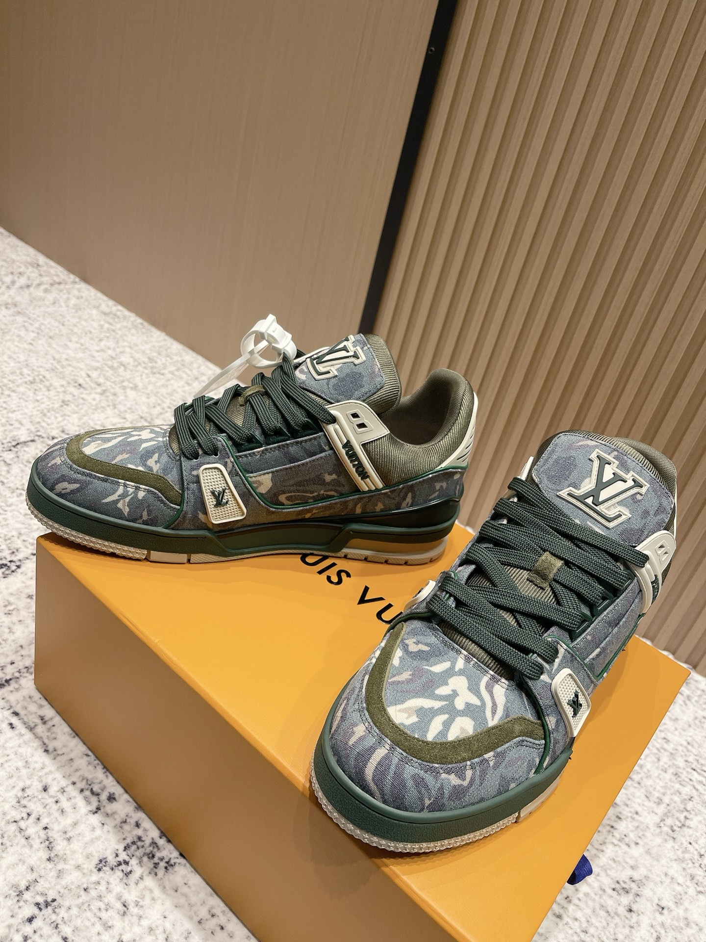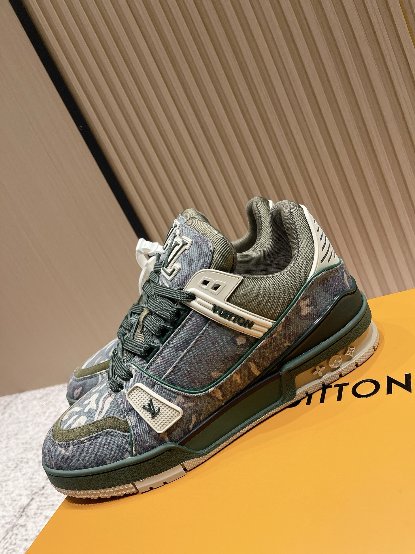 LV Trainer sneakers in green camouflage