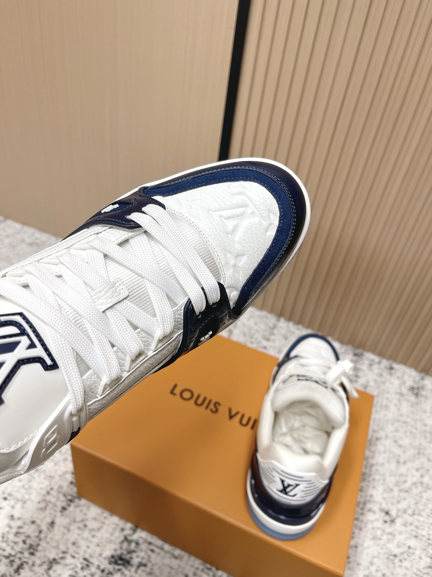LV Trainer sneakers, white/blue colorway