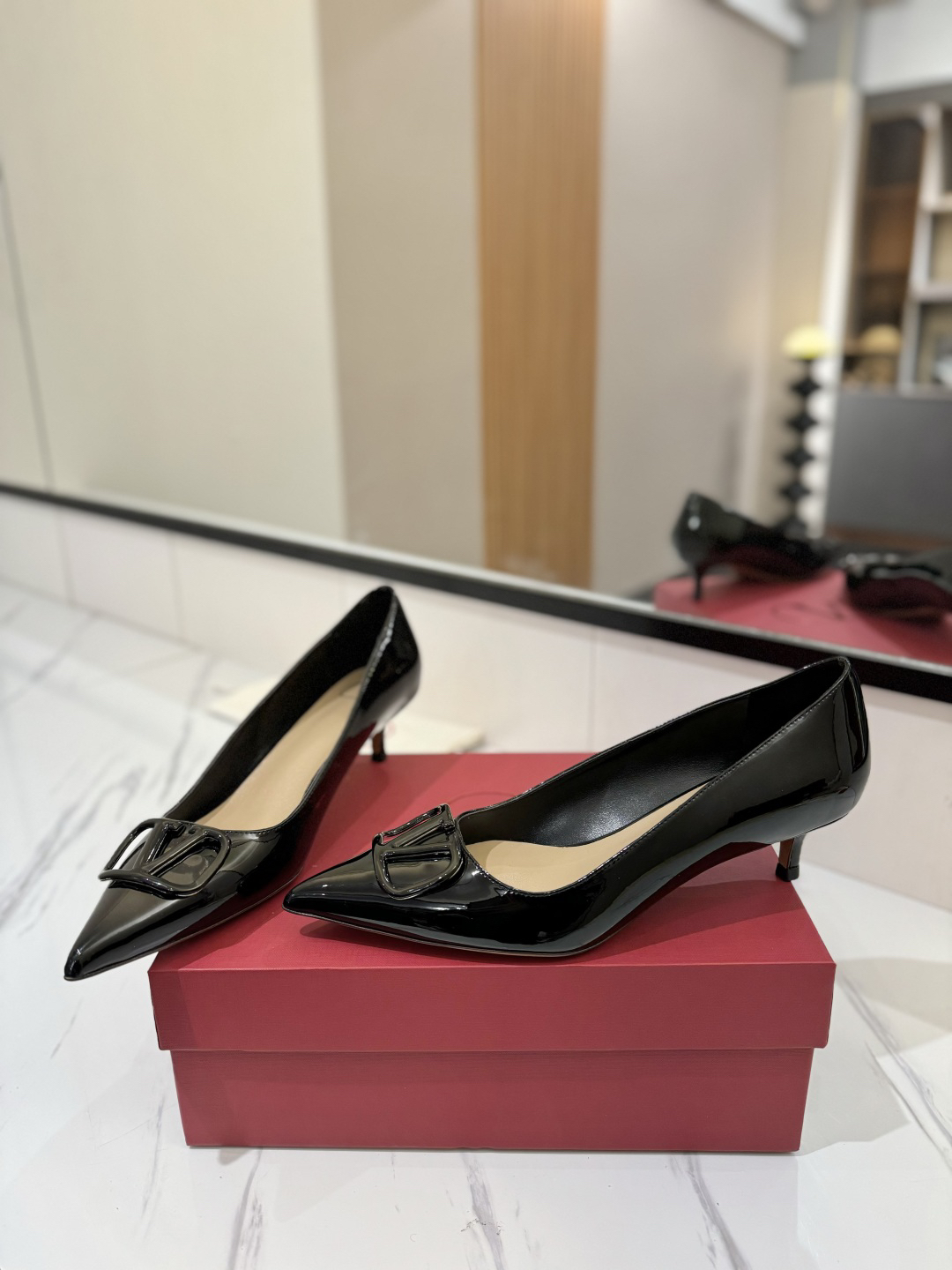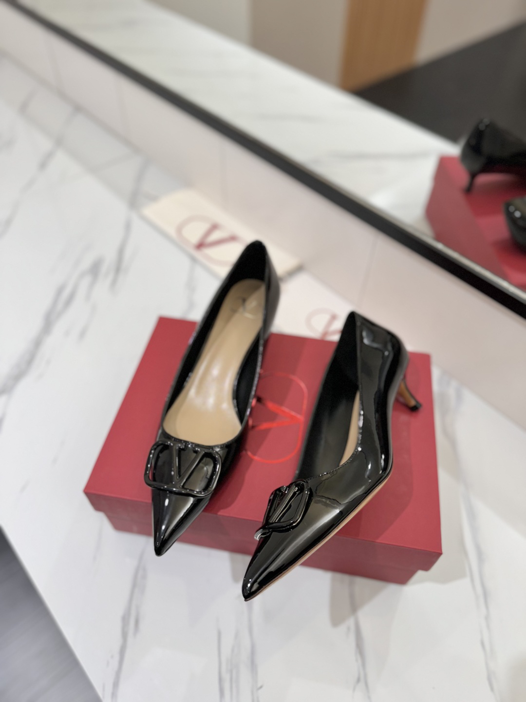 Valentino launches a new collection featuring a pointed toe and V-buckle.