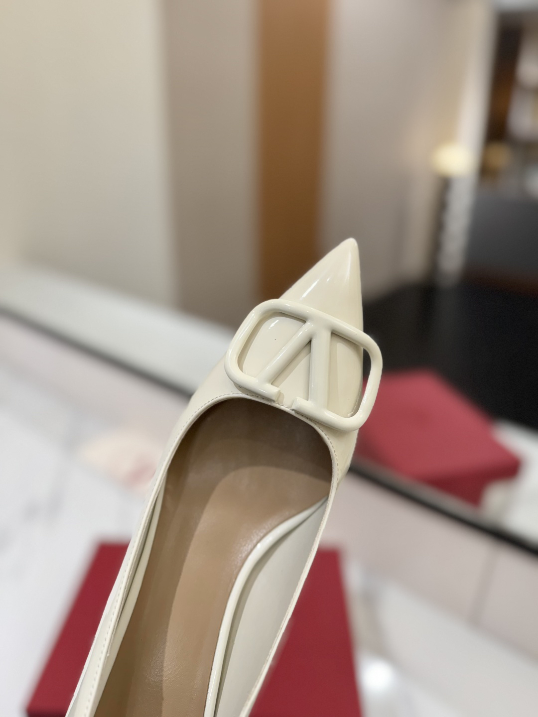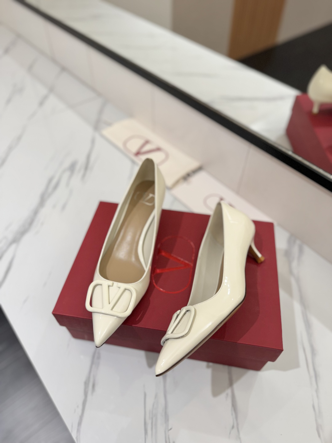 Valentino launches a new collection featuring a pointed toe and V-buckle.