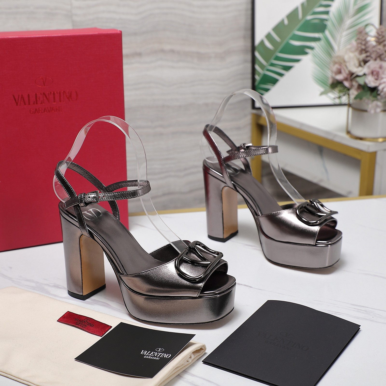 🔥🔥🔥💯💯💯 Original Valentino 2025SS New Arrival Metal Logo High-Heeled Platform Sandals! Top-quality original purchase! Exquisite last design, perfect side curve!