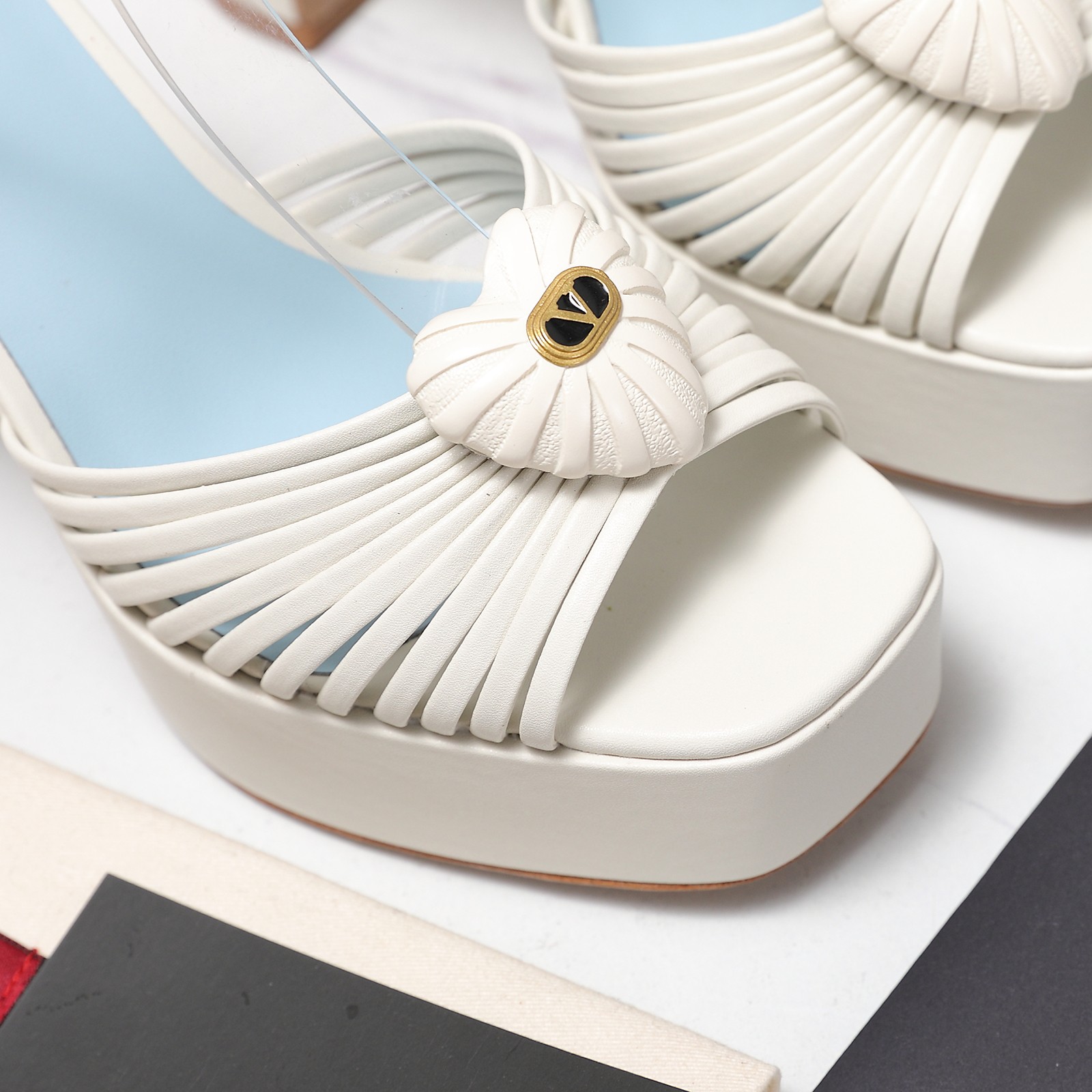 Latest design: Heart-shaped ❤ small V-buckle high-heeled platform sandals! Top-quality original purchase! Exquisite last design, perfect side curve!