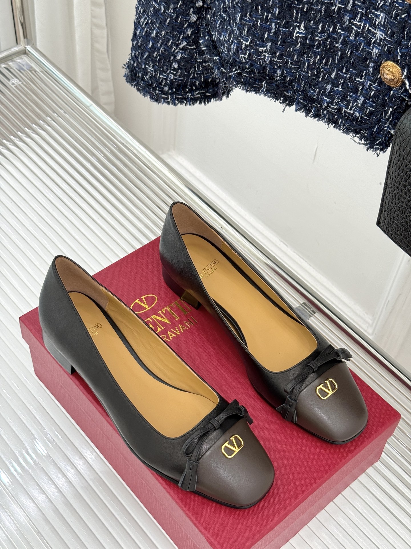 The shoes you see are Valentino Garavani Valet Du Roi flats.