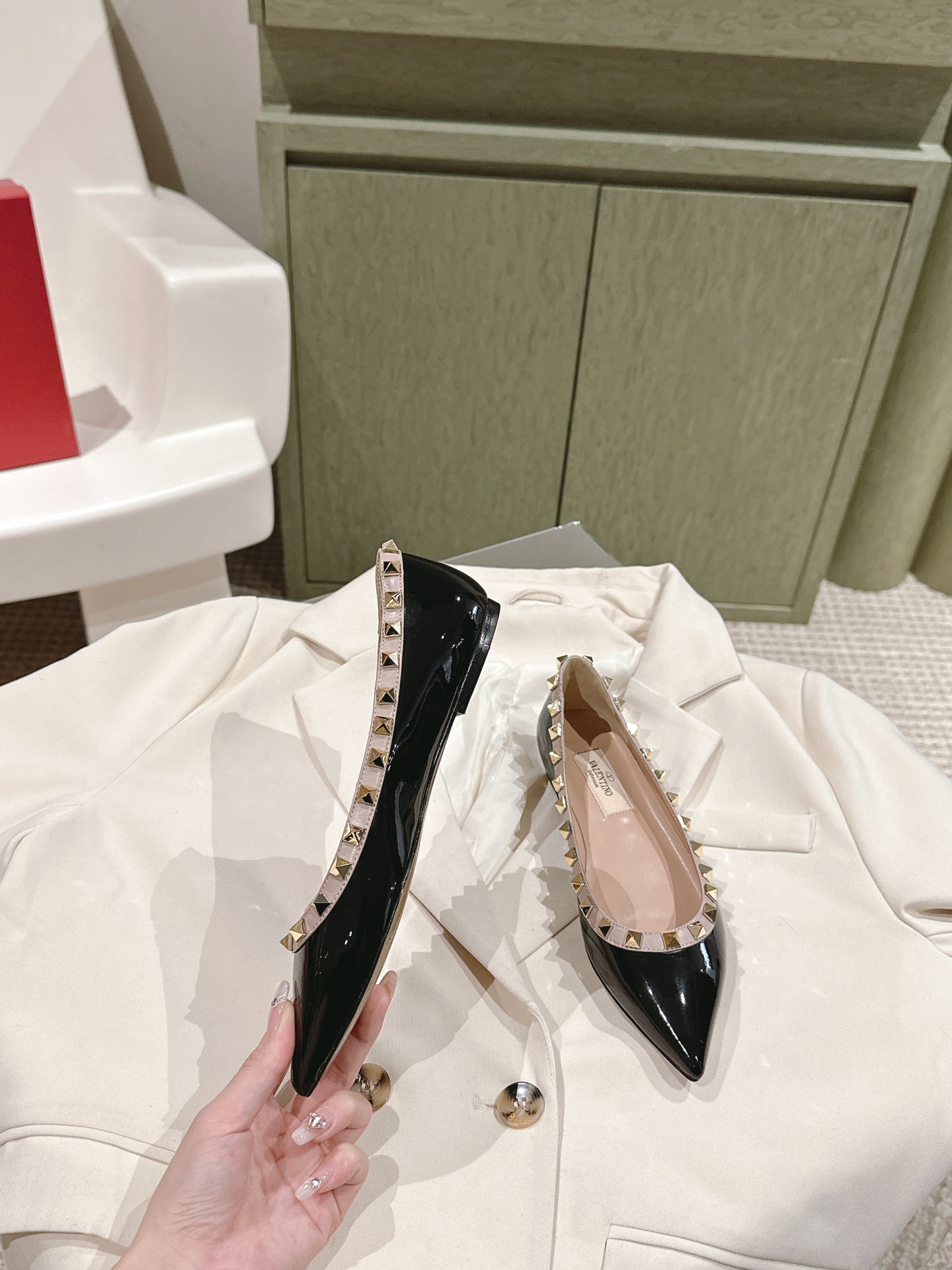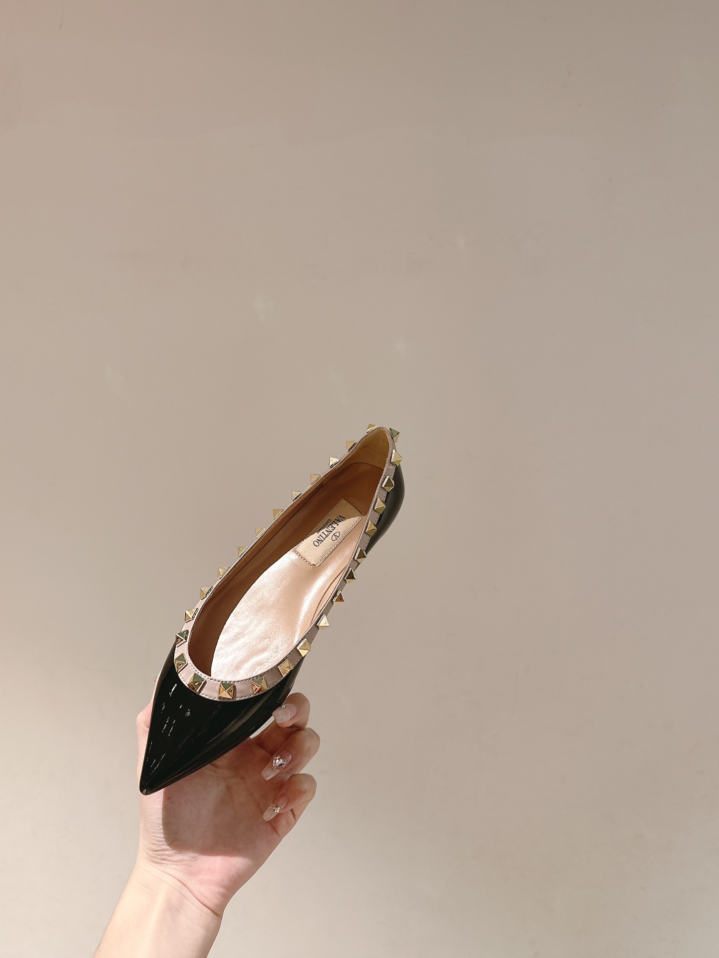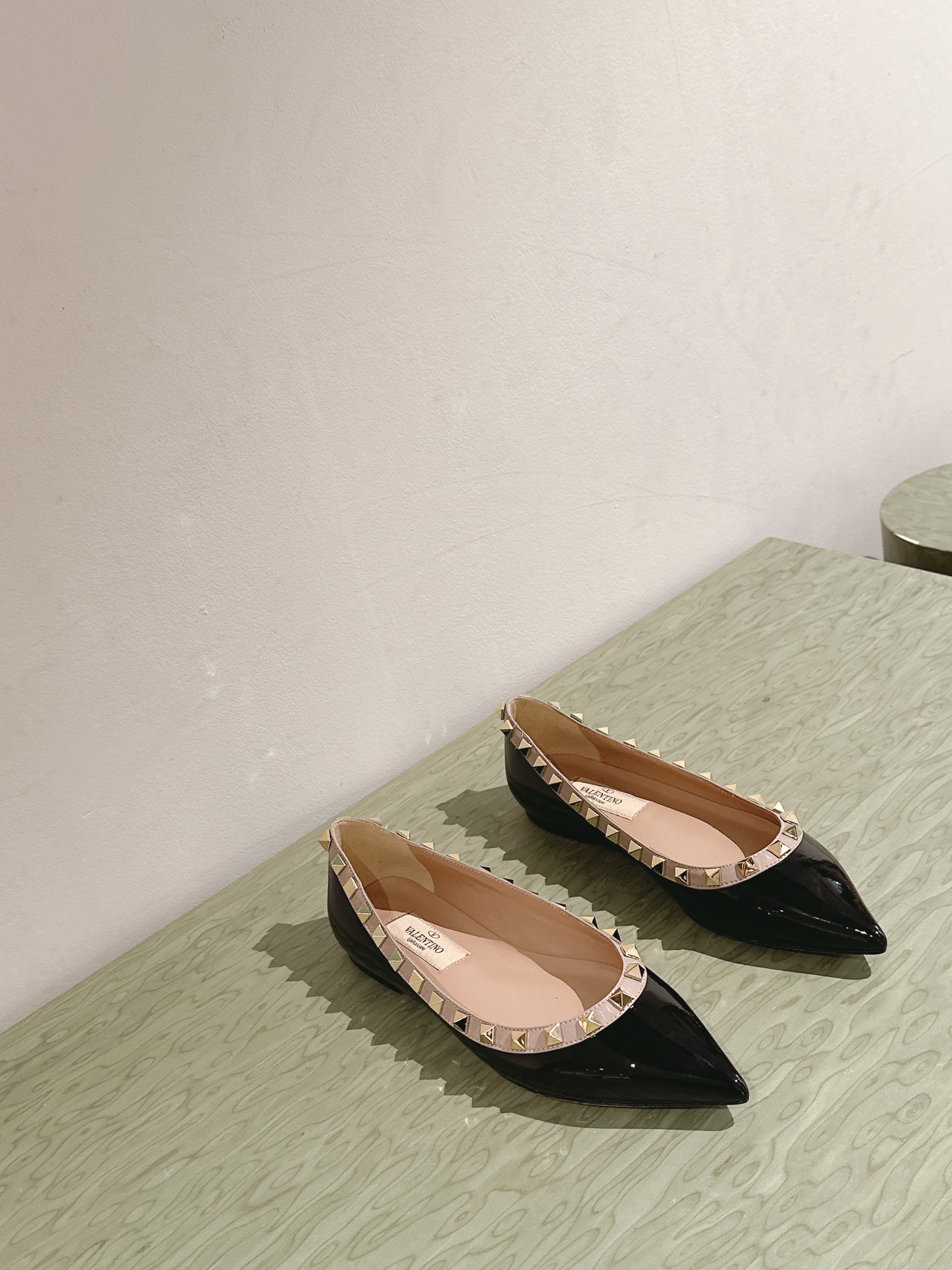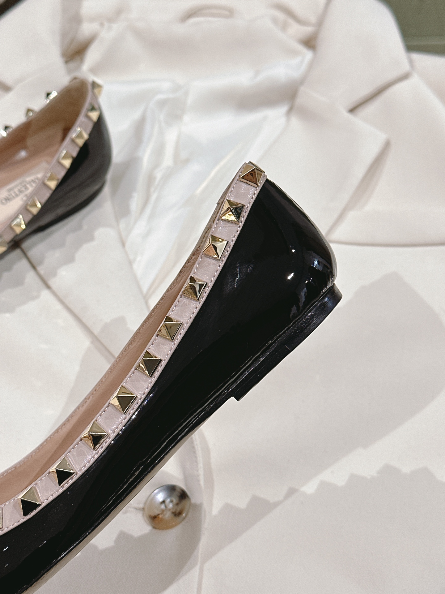 The shoes you see are Valentino Garavani’s Rockstud flats.