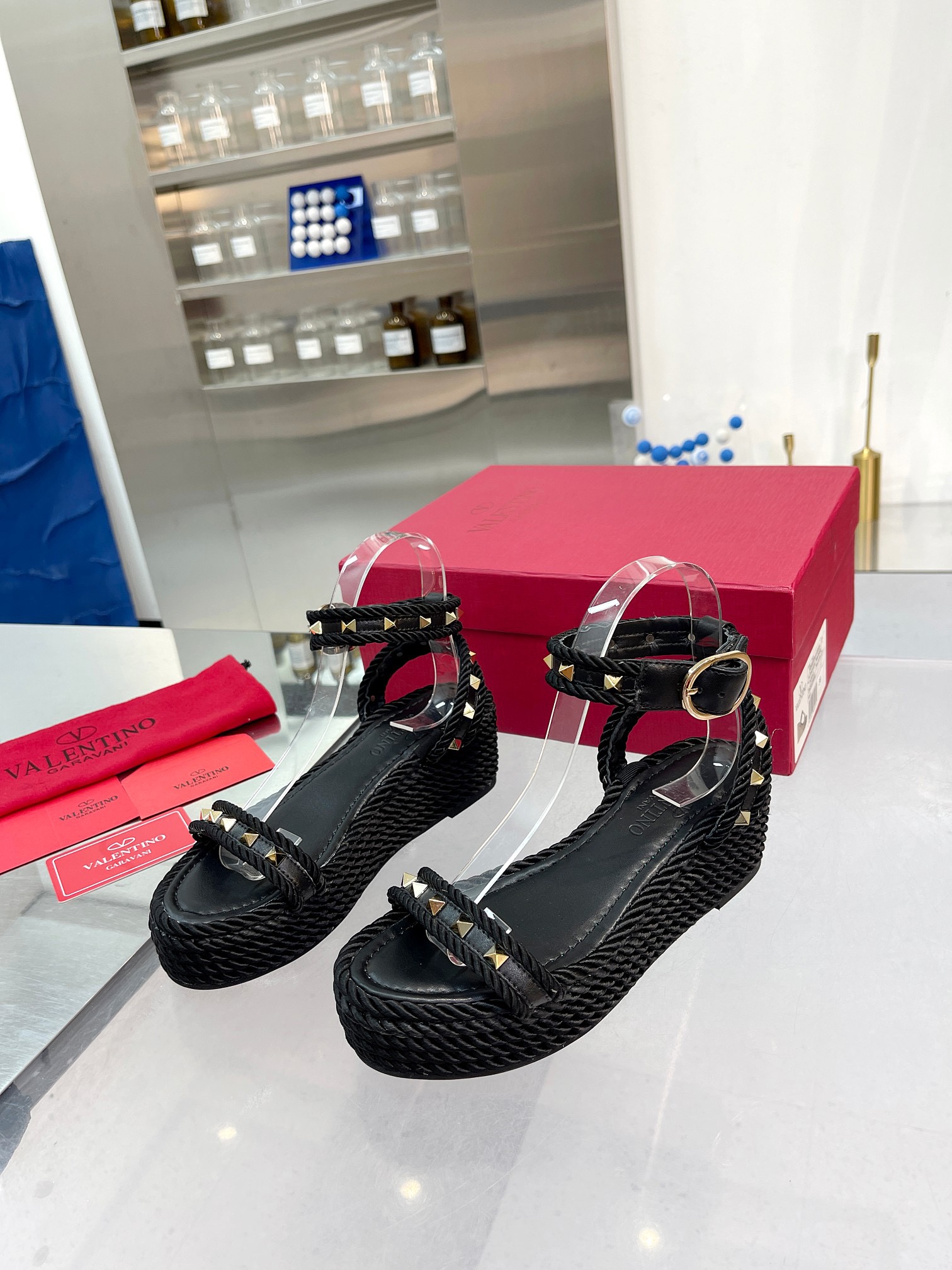The shoes you see are Valentino Garavani Rockstud Flatform sandals.
