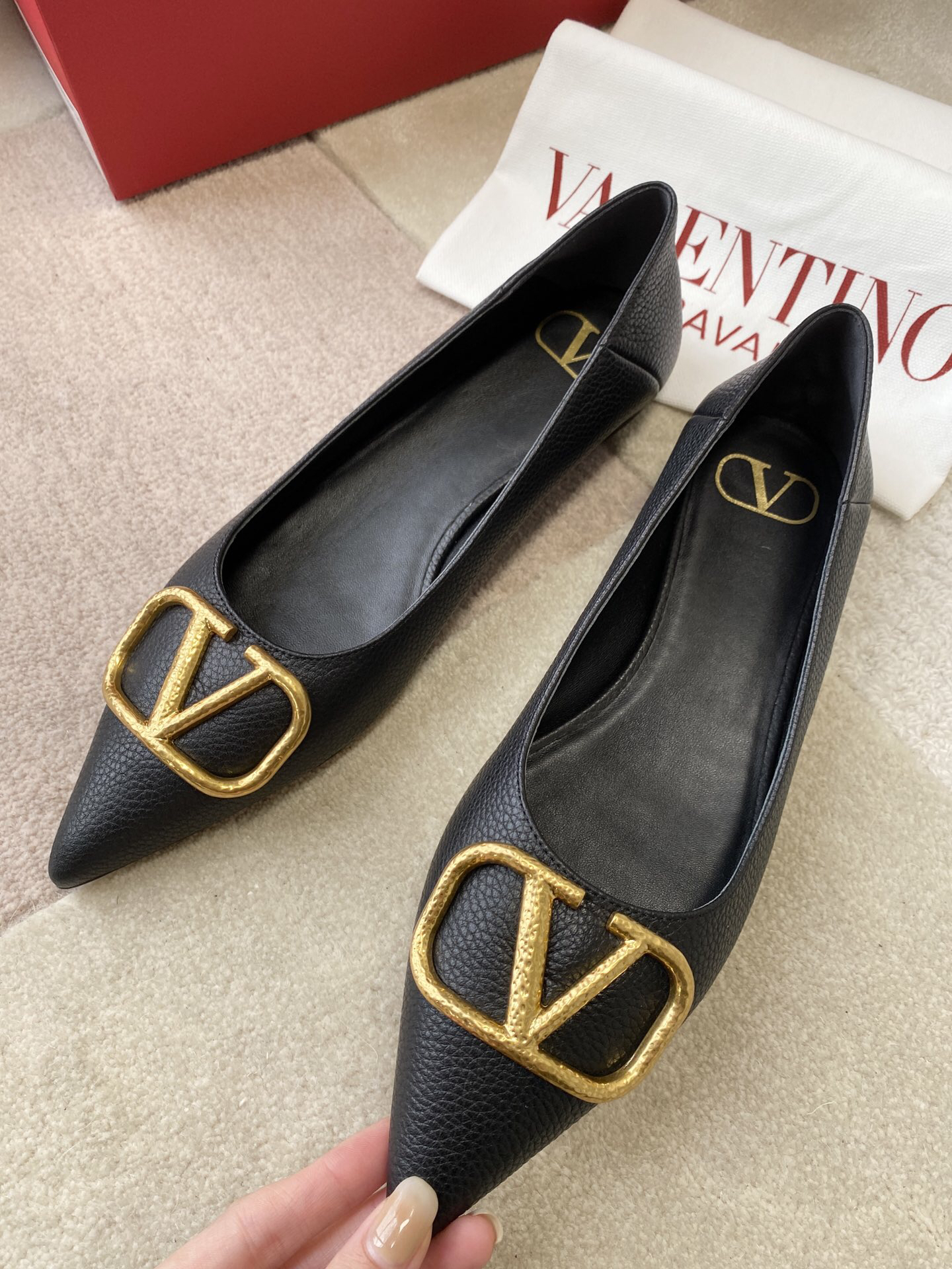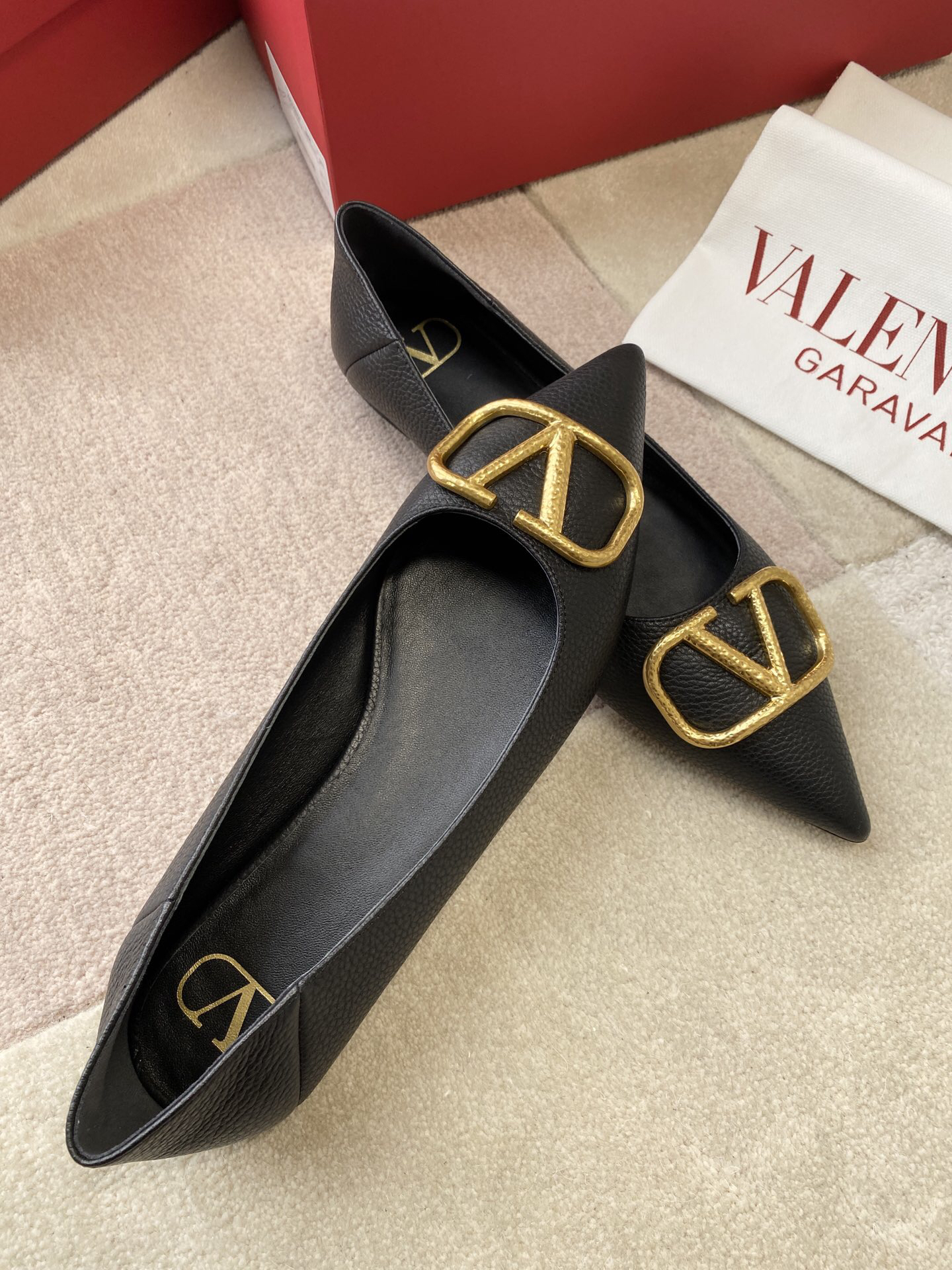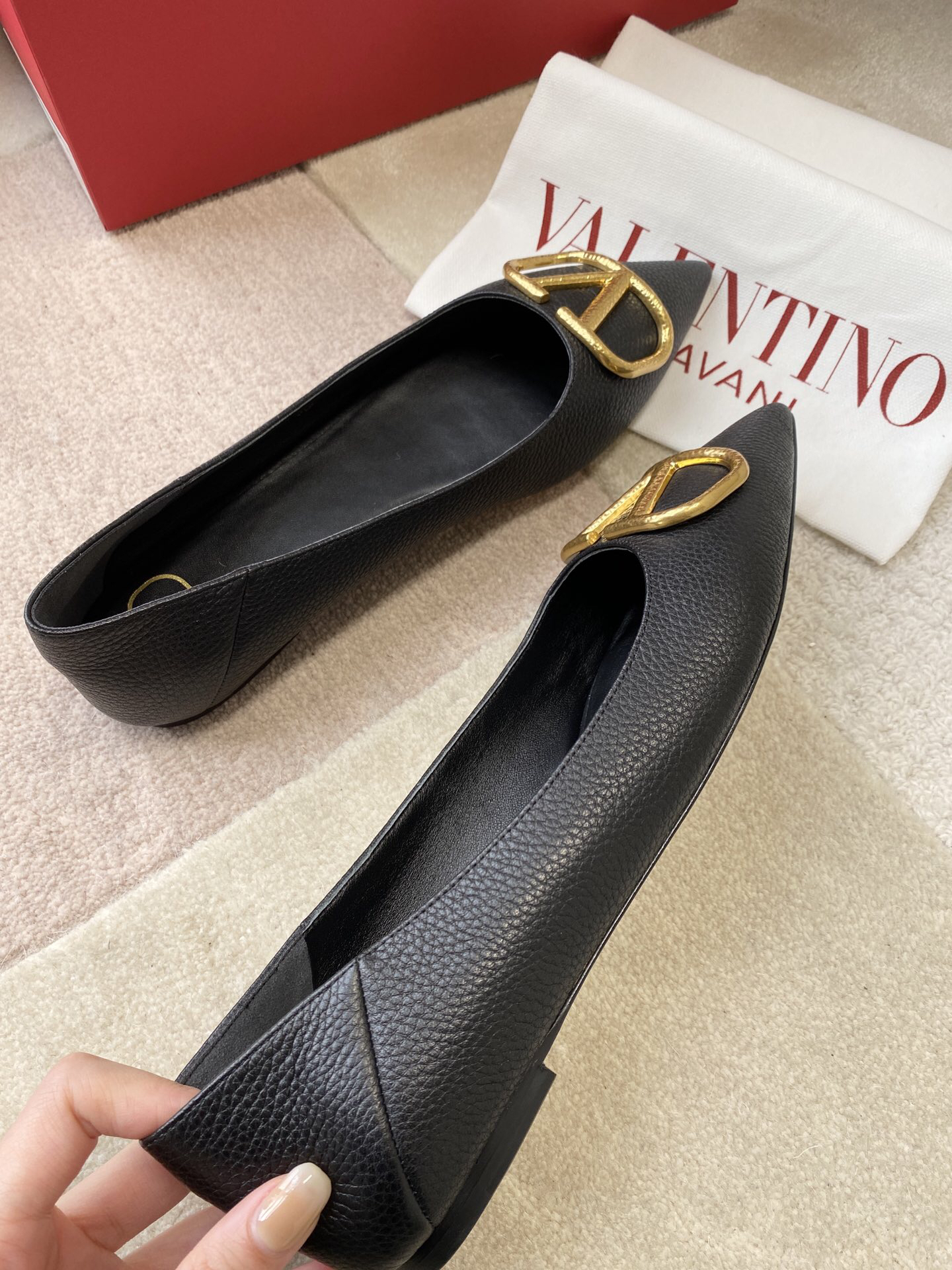 The shoes you see are Valentino Garavani’s VLogo Signature series flats.