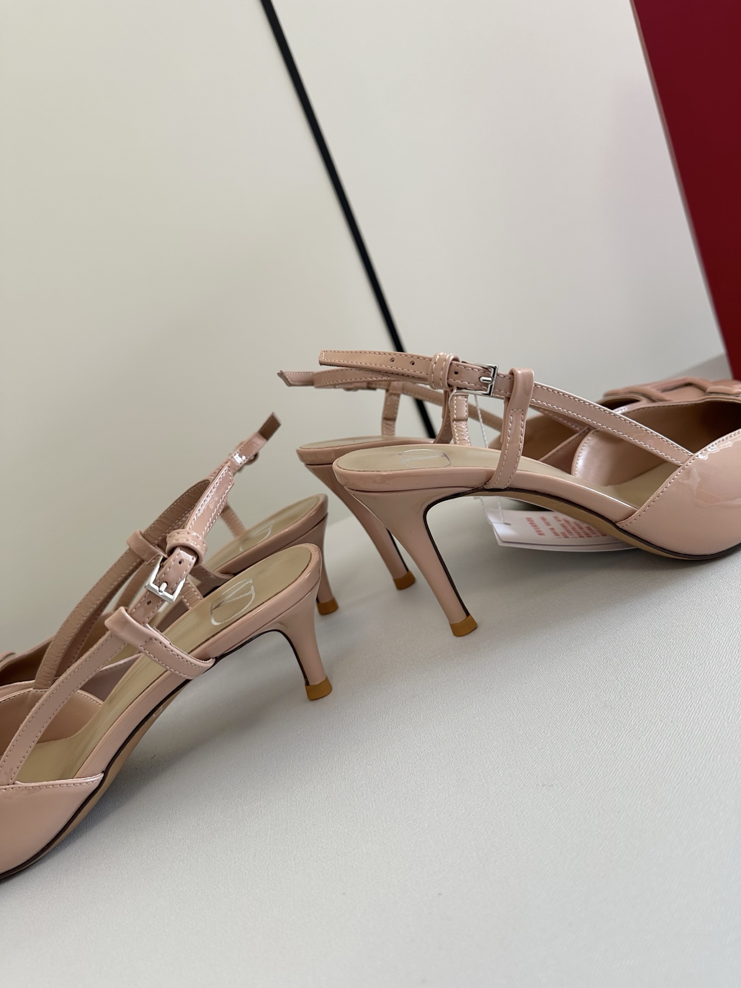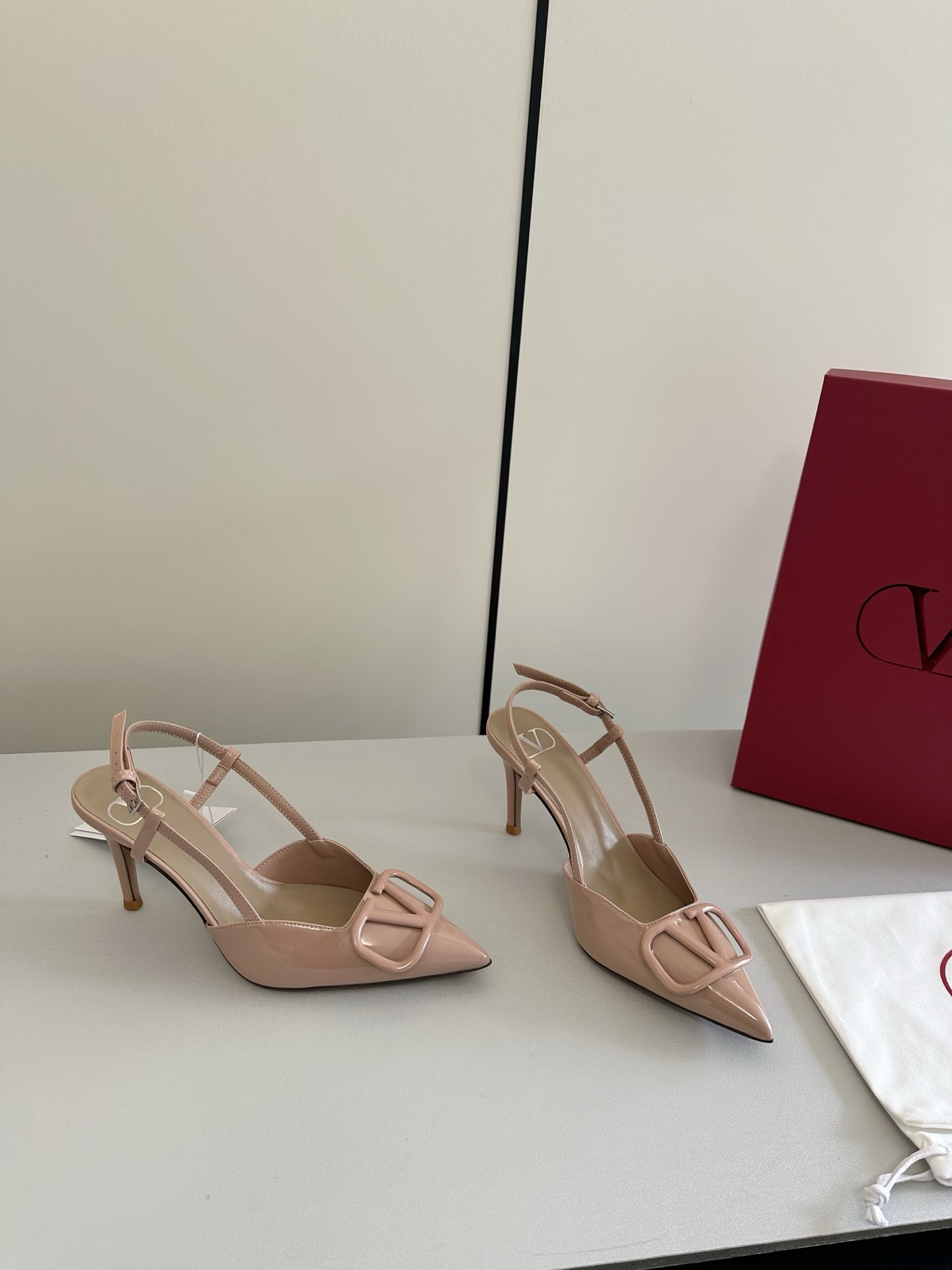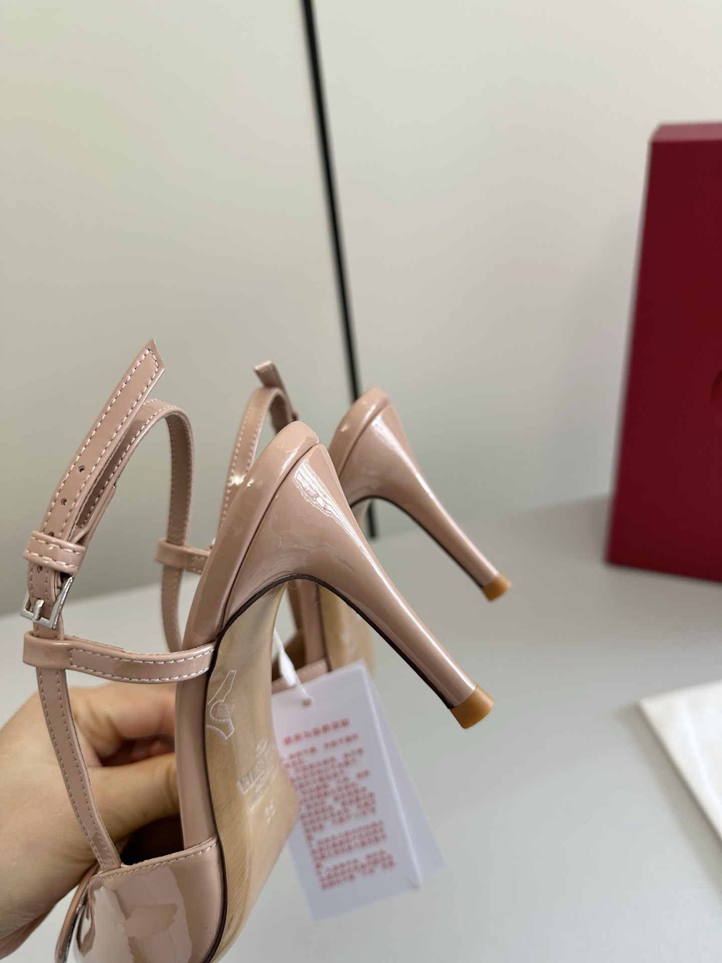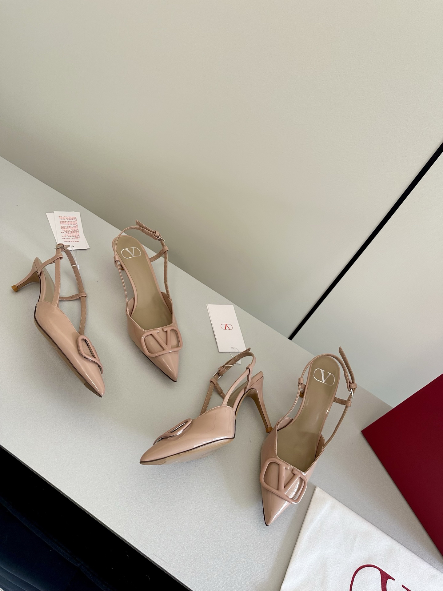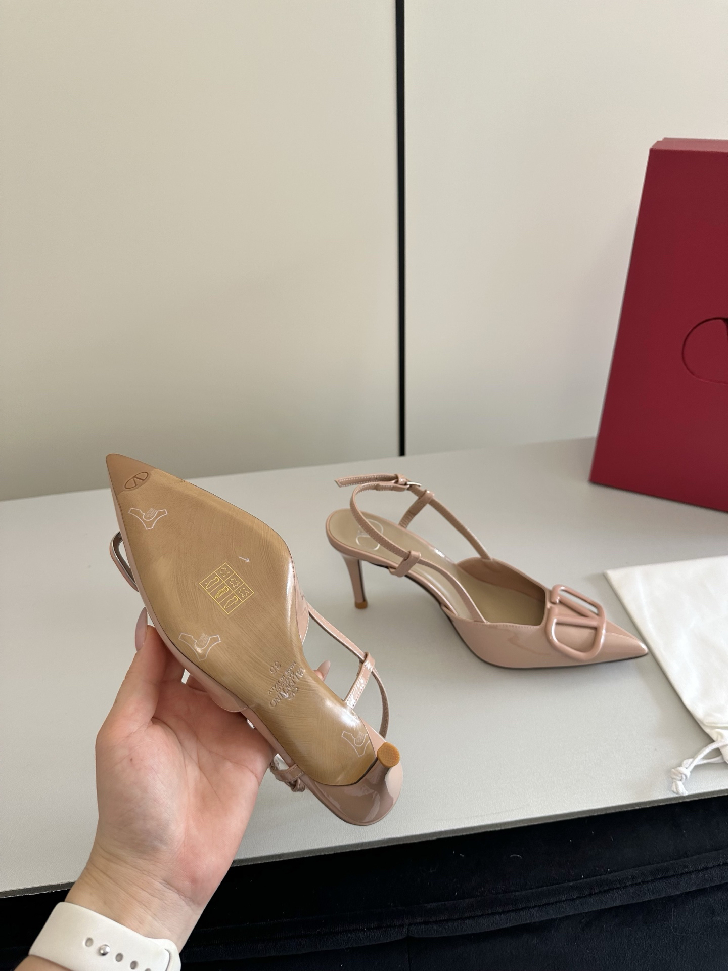 Features: The upper is adorned with an oversized VLogo signature accessory, and high-frequency welding is used to cover the patent leather details in the same color. These shoes feature a stiletto heel, typically available in heights of 80 mm (3.15 inches) or 40 mm (1.6 inches).