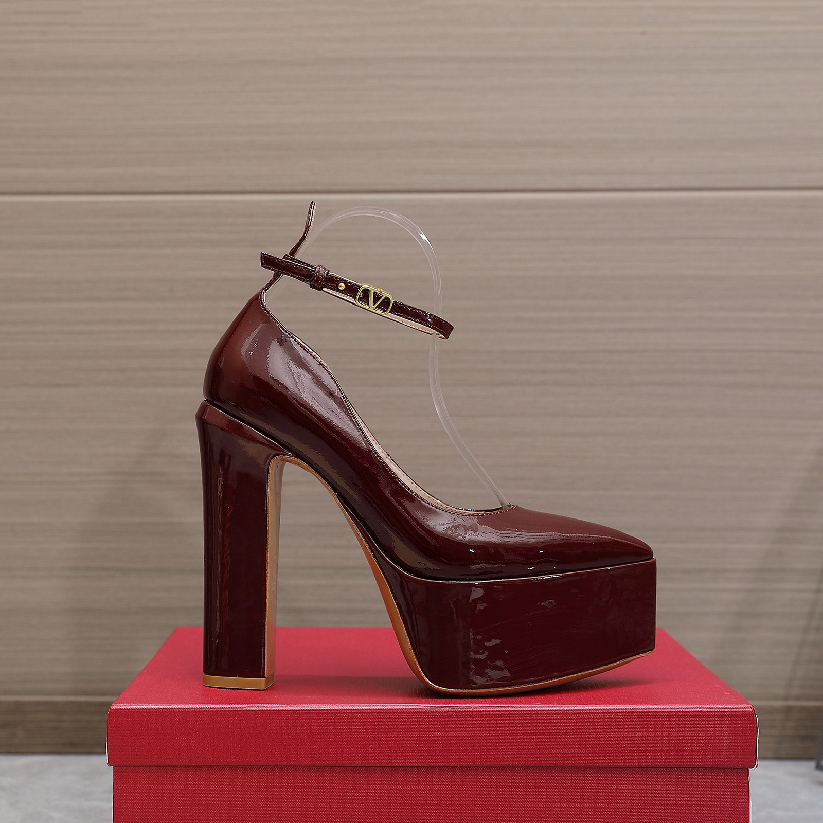 These shoes are Valentino Garavani Tan-Go patent leather platform heels.