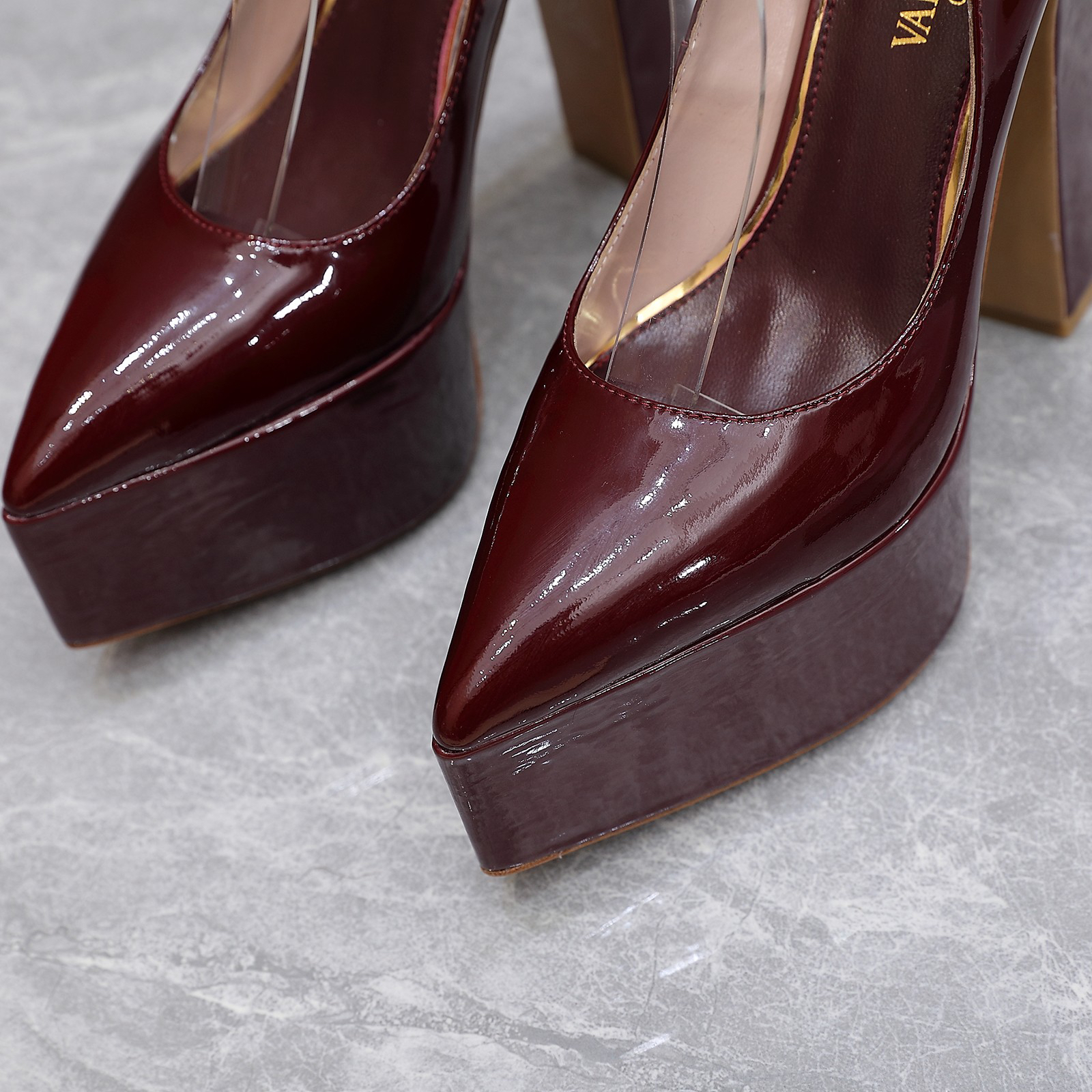 Features: This shoe is known for its extremely high, chunky heel and thick platform sole. The heel height is typically around 155 mm (6 inches), and the platform height is approximately 55 mm (2 inches). The ankle strap features the signature gold V Logo buckle, adding a retro yet luxurious touch to this shoe.