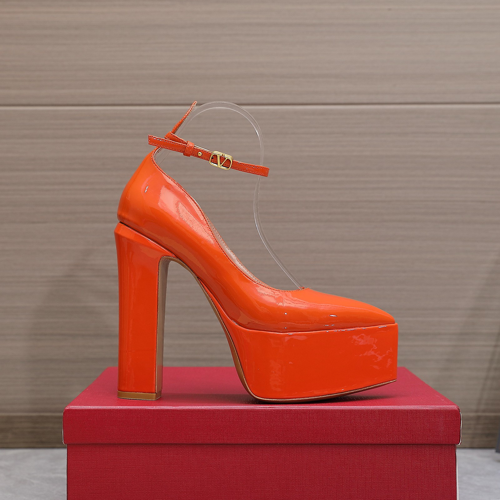 These shoes are Valentino Garavani Tan-Go patent leather platform heels.