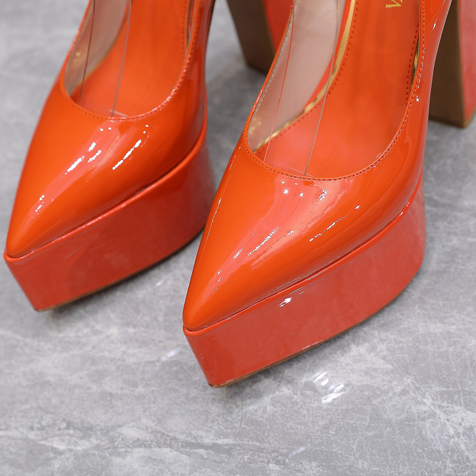 Features: This shoe is known for its extremely high, chunky heel and thick platform sole. The heel height is typically around 155 mm (6 inches), and the platform height is approximately 55 mm (2 inches). The ankle strap features the signature gold V Logo buckle, adding a retro yet luxurious touch to this shoe.