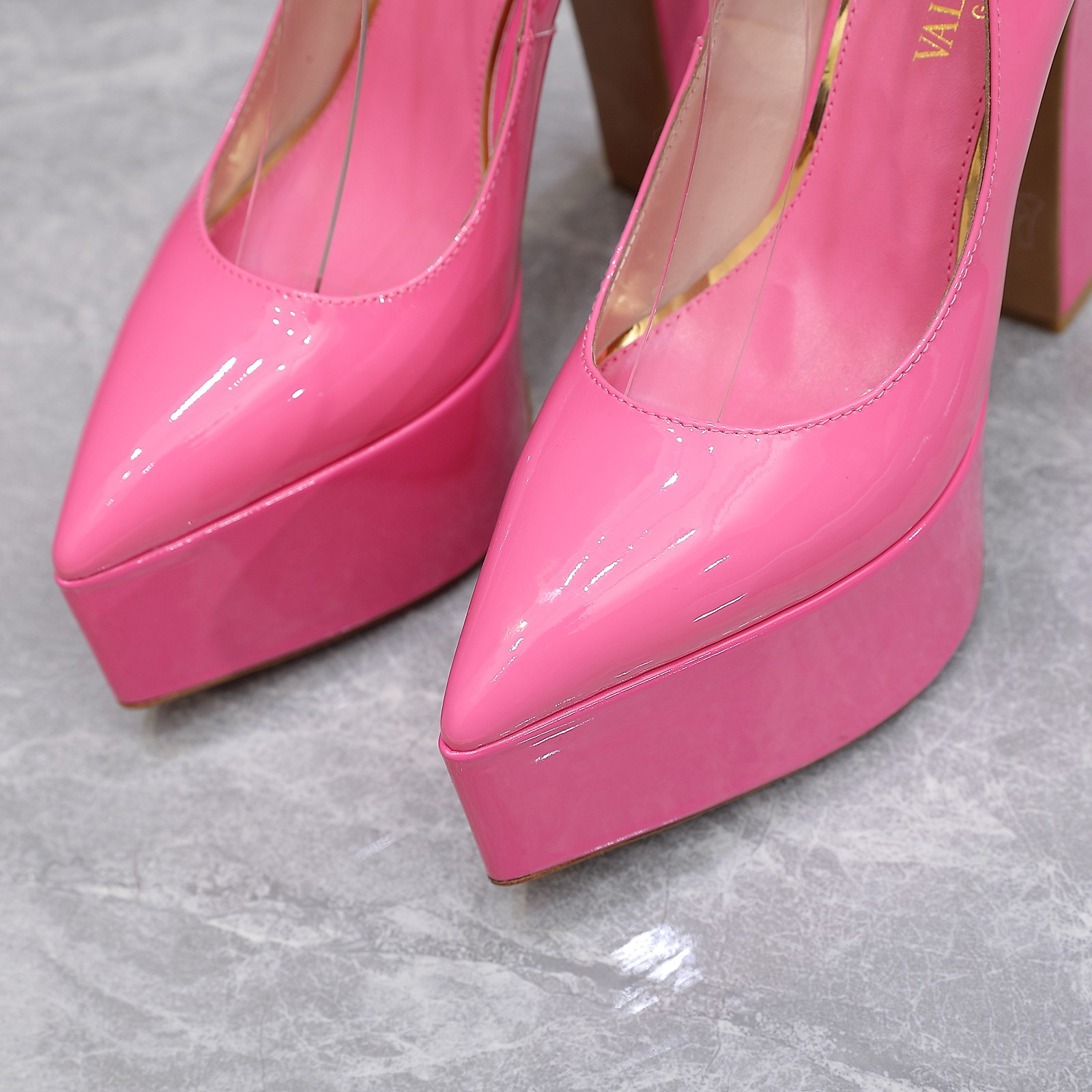 Features: This shoe is known for its extremely high, chunky heel and thick platform sole. The heel height is typically around 155 mm (6 inches), and the platform height is approximately 55 mm (2 inches). The ankle strap features the signature gold V Logo buckle, adding a retro yet luxurious touch to this shoe.