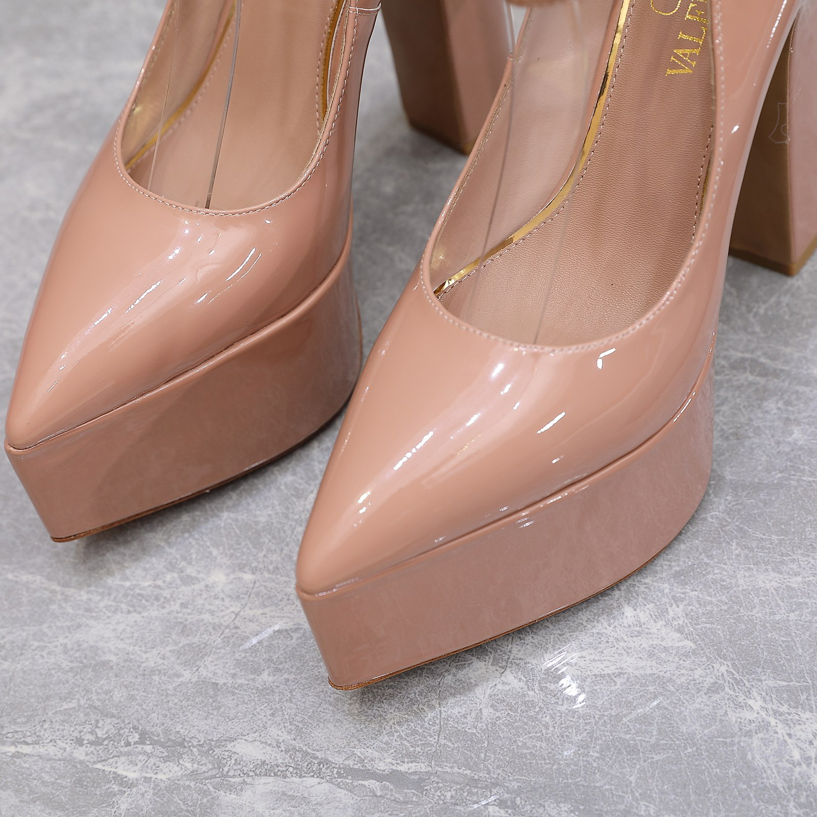 Features: This shoe is known for its extremely high, chunky heel and thick platform sole. The heel height is typically around 155 mm (6 inches), and the platform height is approximately 55 mm (2 inches). The ankle strap features the signature gold V Logo buckle, adding a retro yet luxurious touch to this shoe.