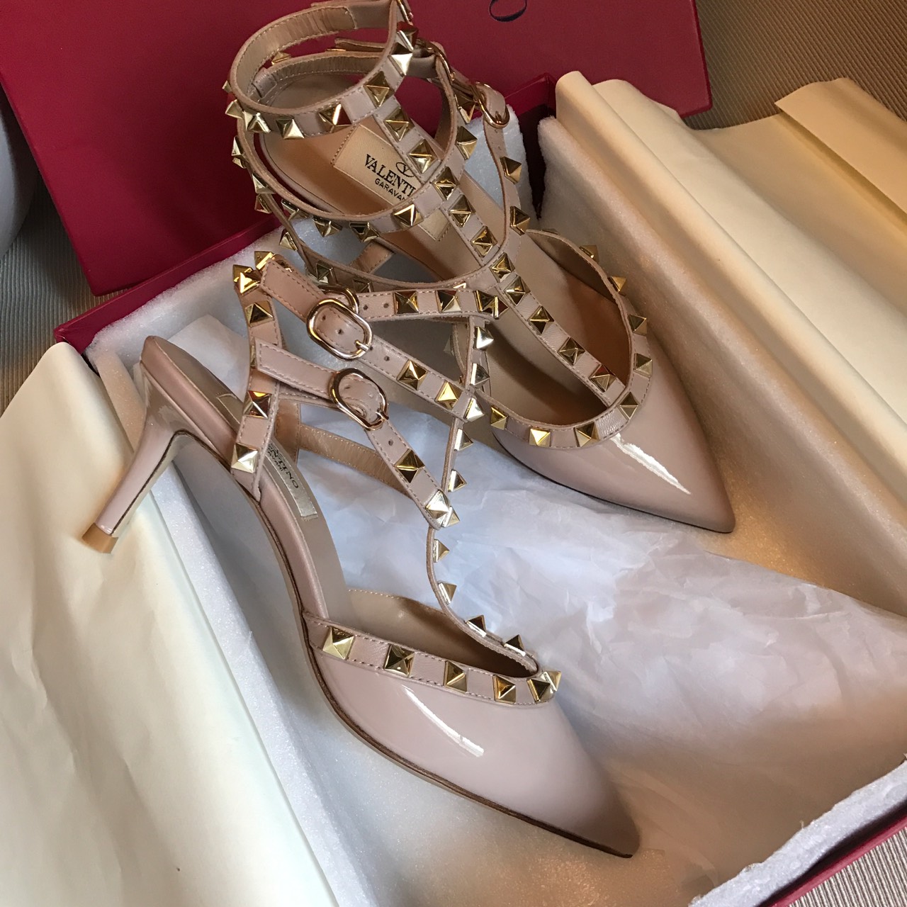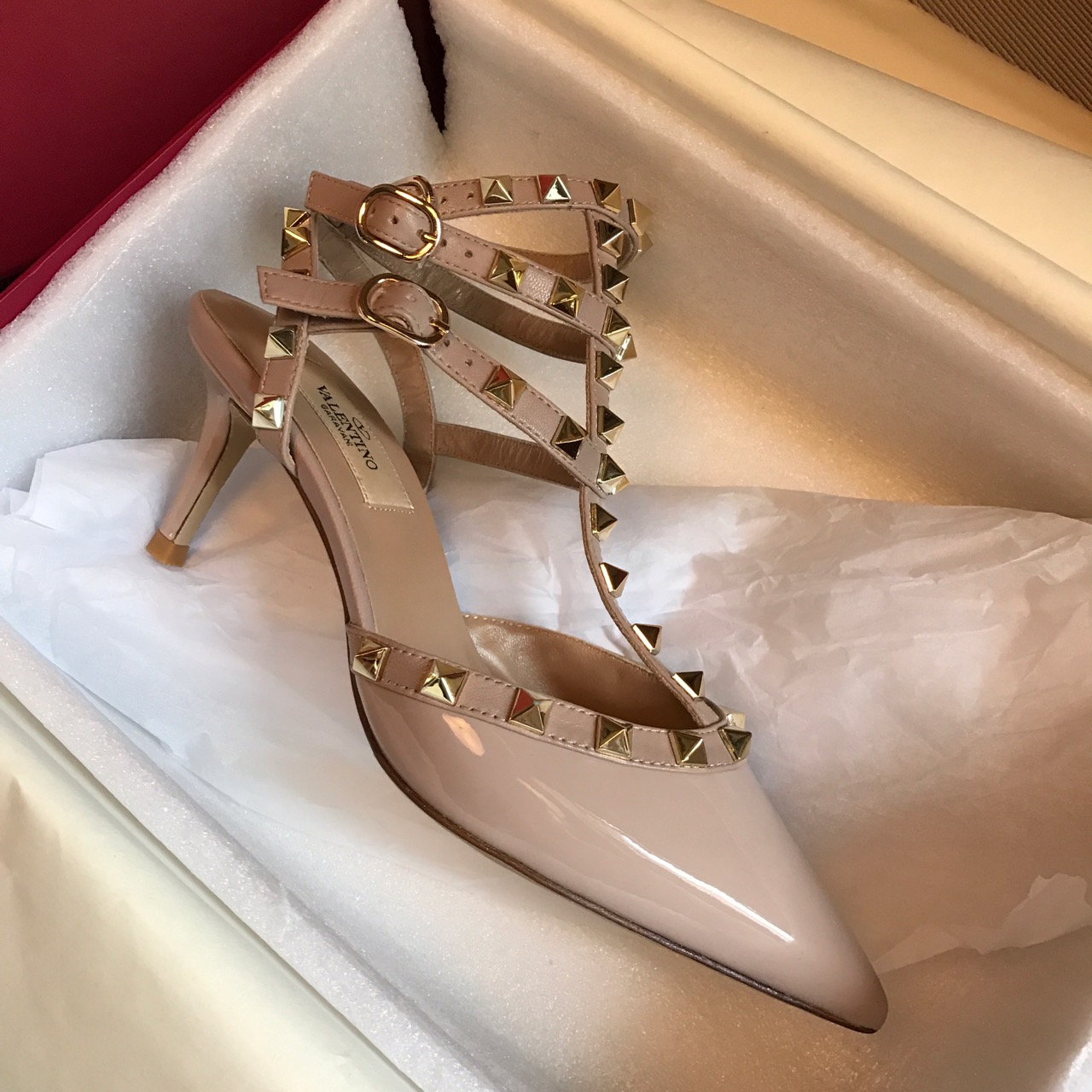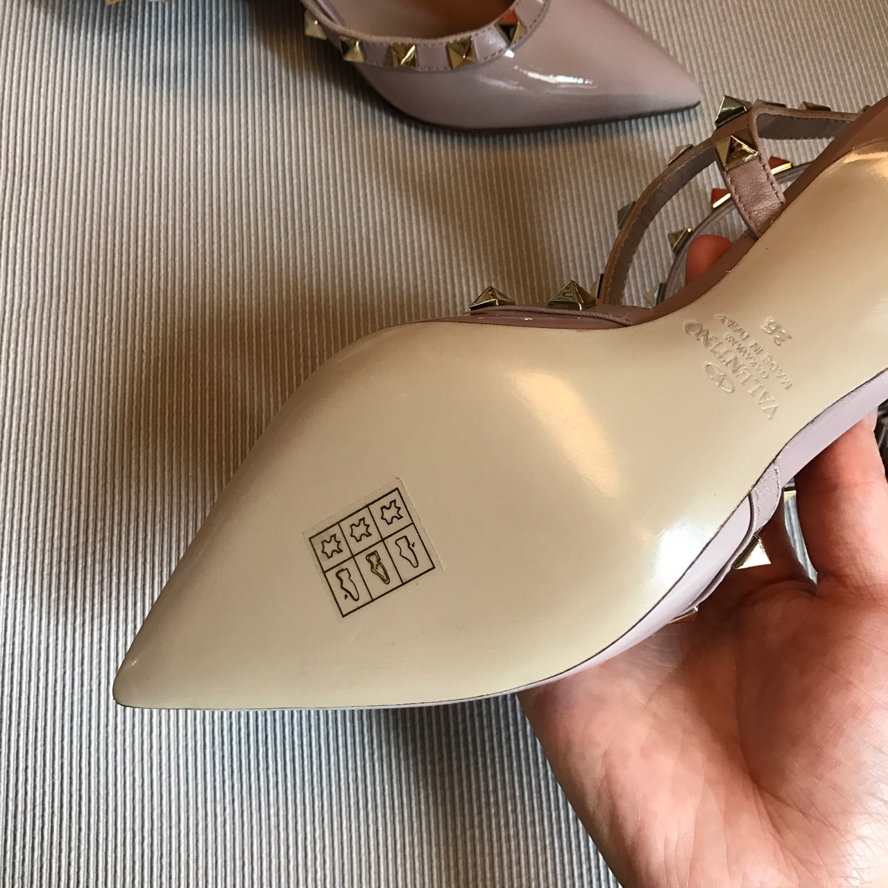 The shoes you see are Valentino Garavani’s Rockstud Slingback Pumps.