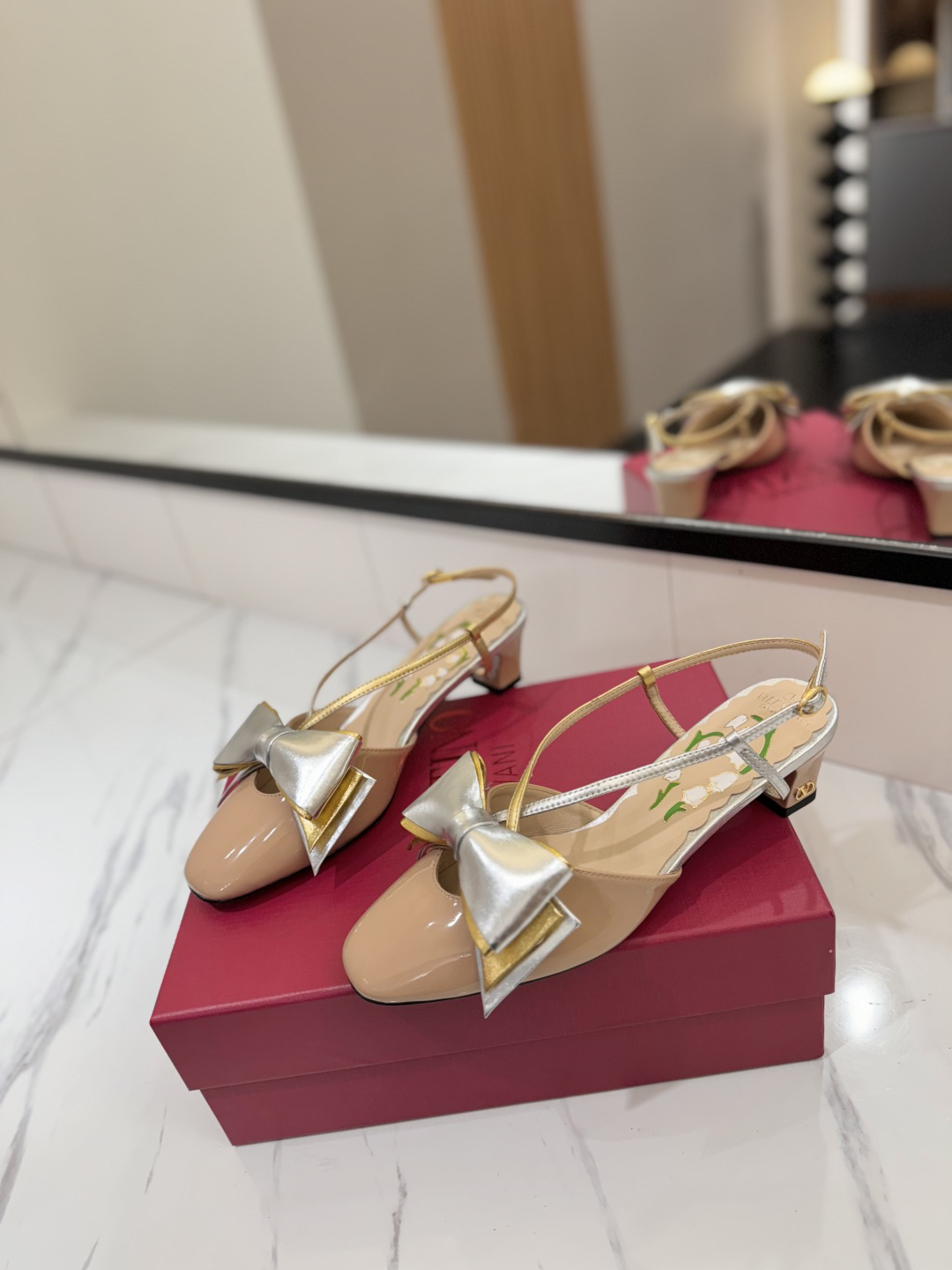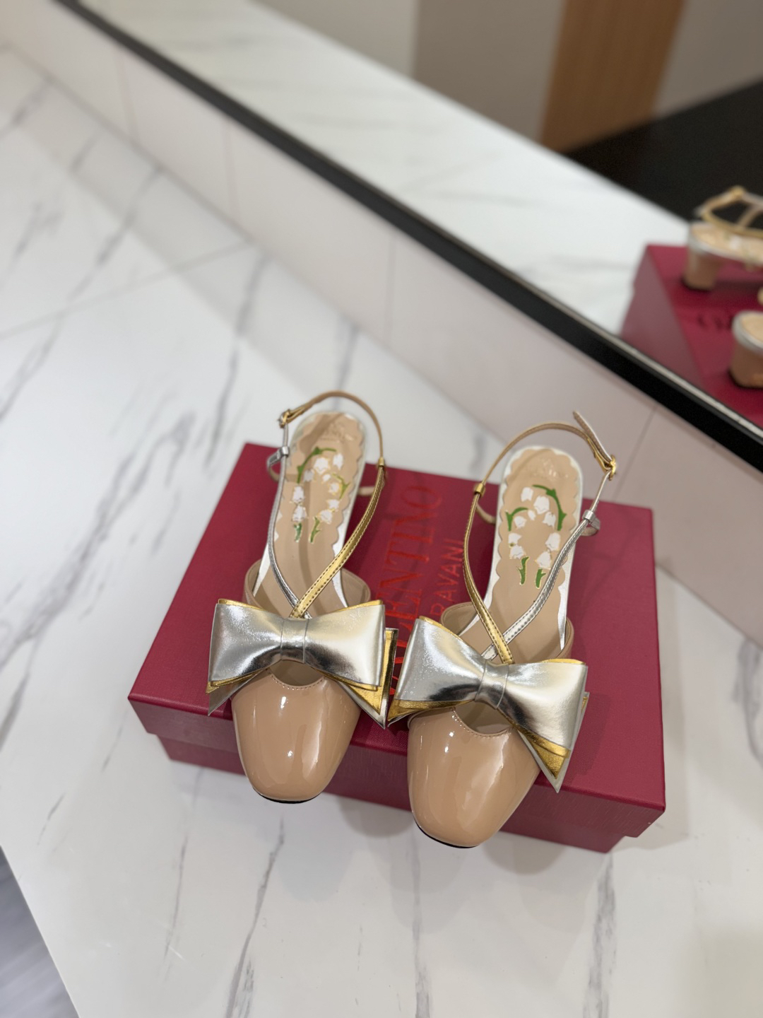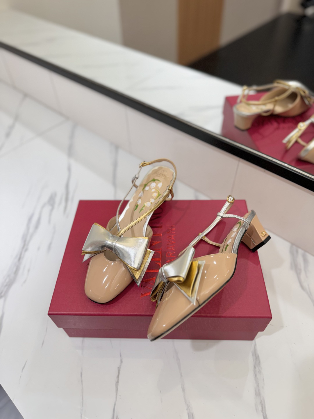 The shoes you see are a style from Valentino Garavani called “Bowow Slingback Pumps”.