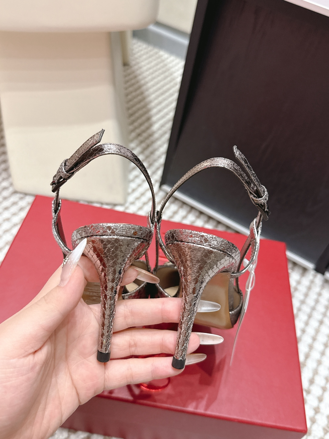 $172.05Luxury Rhinestone Heels Fashion Shoes Series Garavani VLogo Signature Series 🌈V-Buckle Pointed Toe Sandals