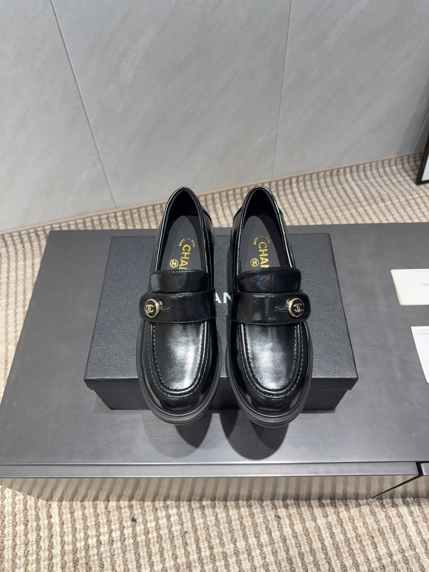 Metal double C logo, three-dimensionally inlaid on the toe; Multi-mirror reflection or transparent quilted arched structure; Perfect coexistence of functionality and artistry; Balancing stable support and visual appeal.Using original custom leather; Insole made of silk sheepskin; Italian imported genuine leather outsole.