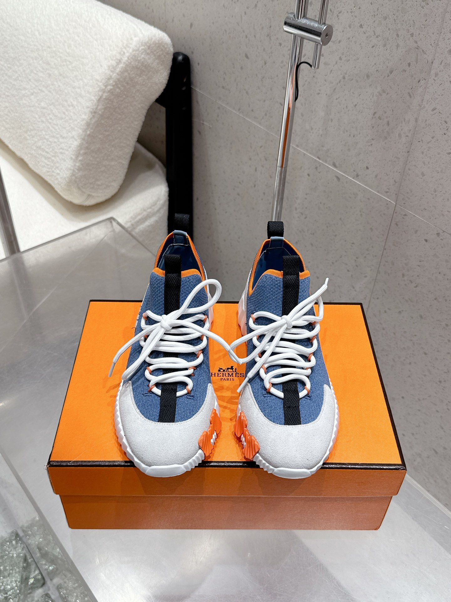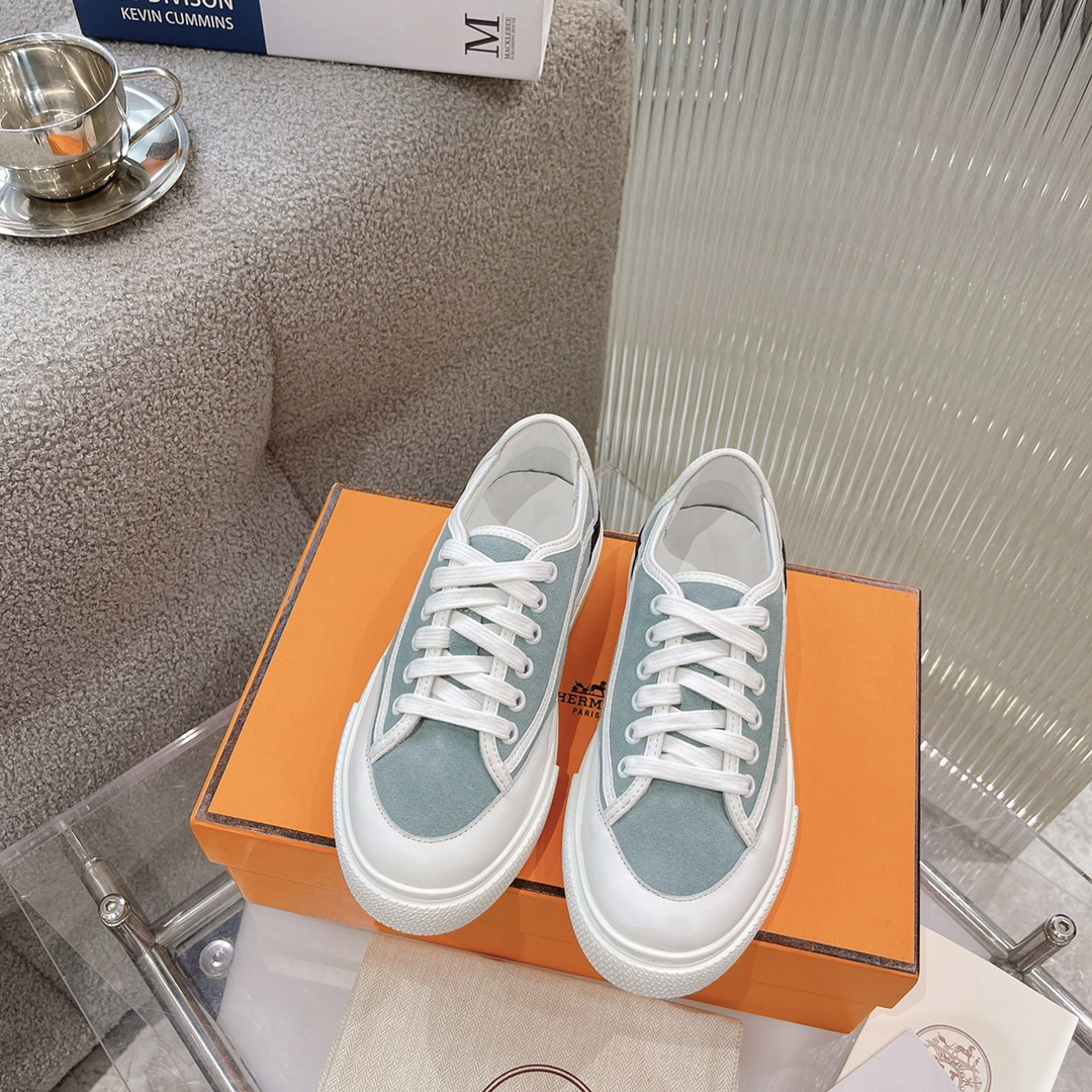 Hermes New Leather Mesh Lace-up White Couple Sneakers