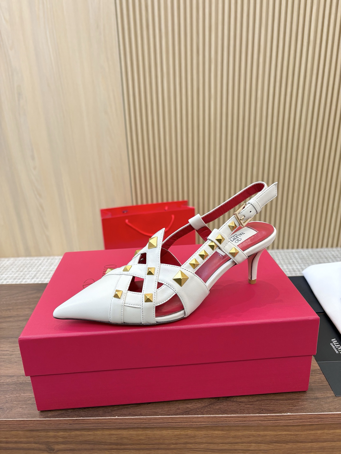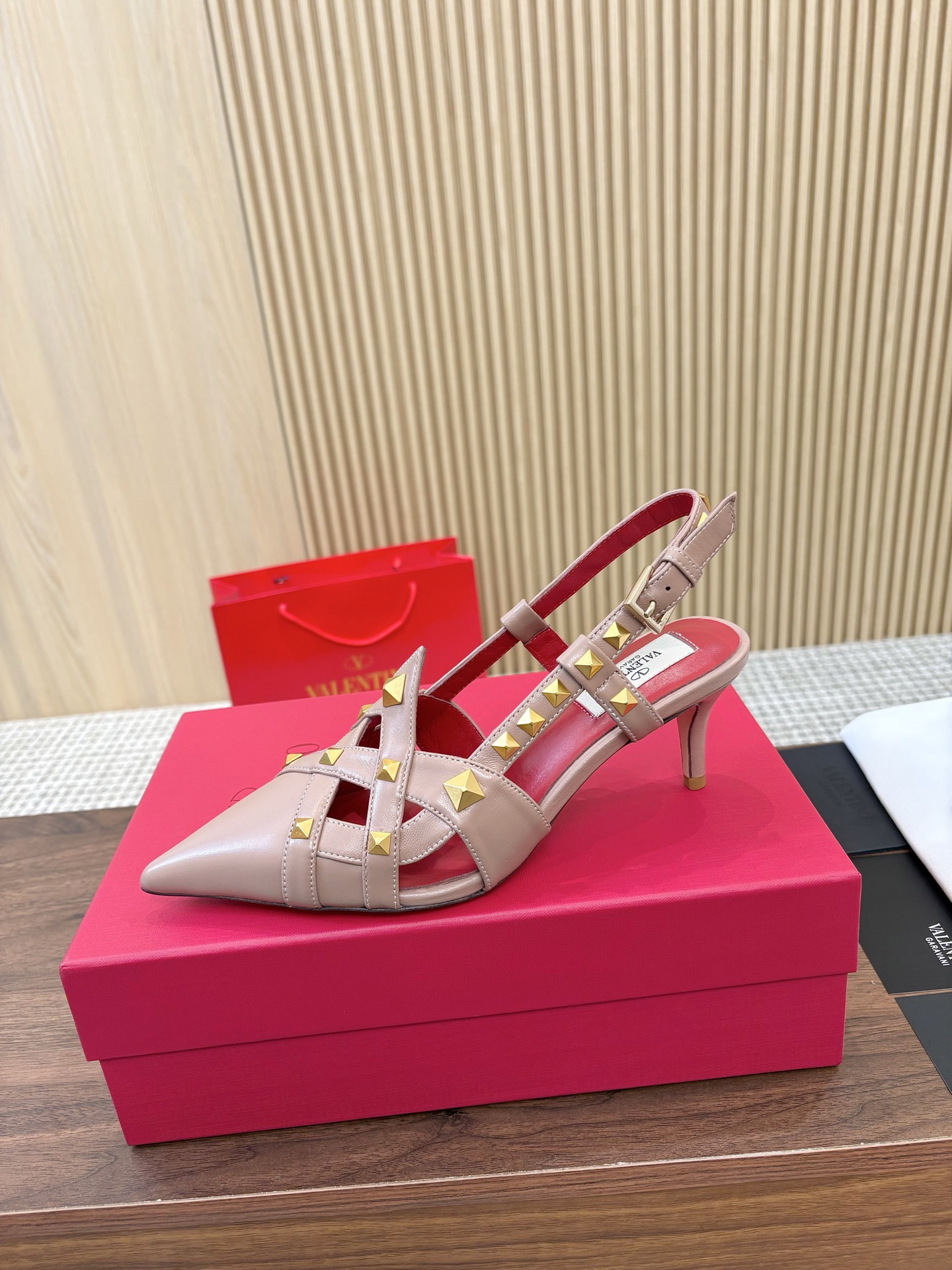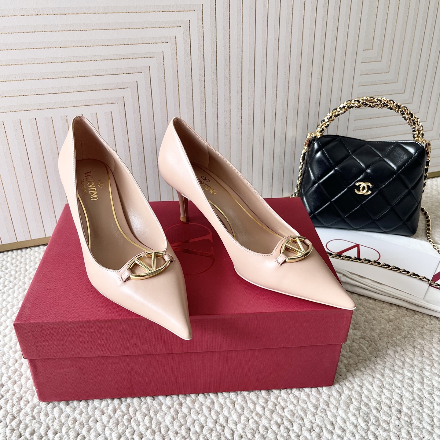 👑👑Valentino’s timeless classic design, metal 💝💝💝 Small V-buckle high-heeled shoes