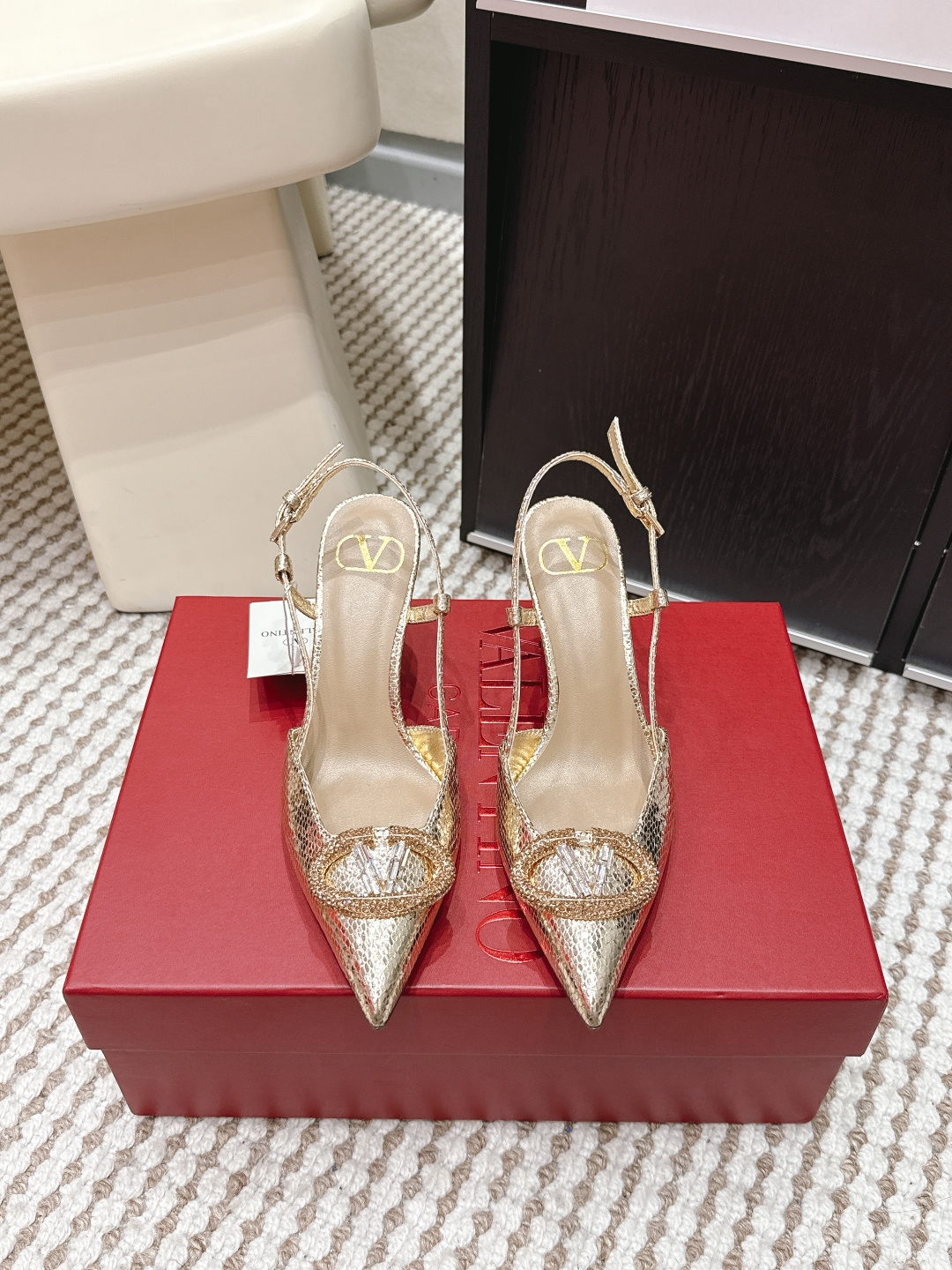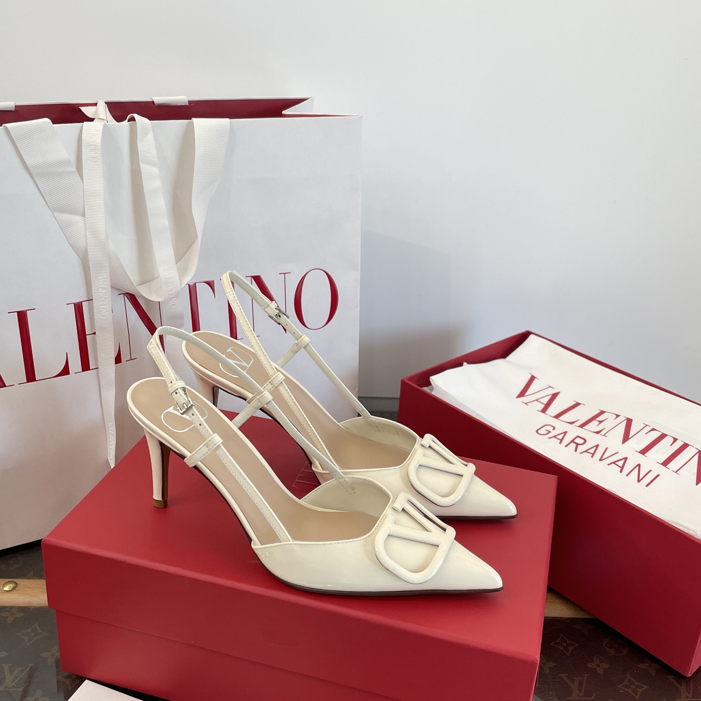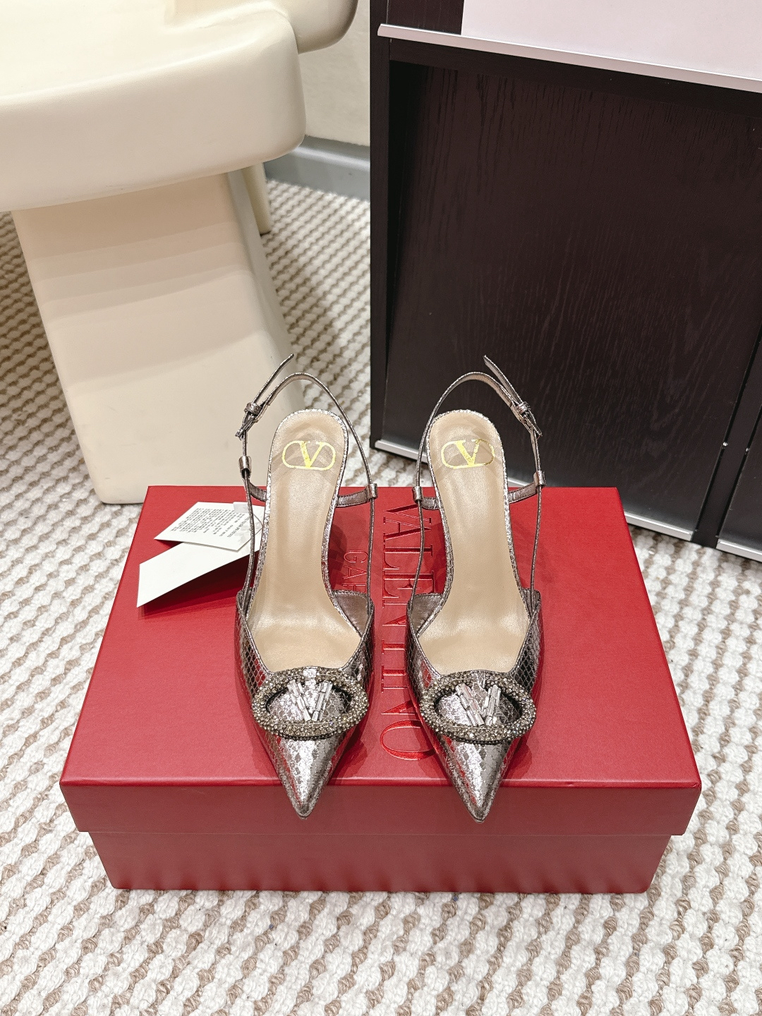 Valentino pointed-toe high heels are incredibly comfortable for everyday wear 💯 Patent leather upper: pointed toe + V-buckle + thin heel strap + 8cm stiletto heel