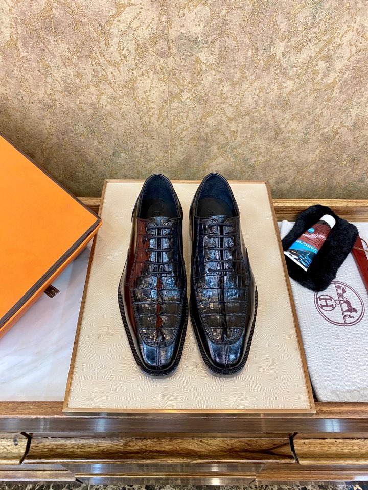 $640.25These shoes are fully upholstered in Thai Siamese crocodile belly leather, featuring a seamless construction and exquisite craftsmanship. They are paired with an Italian imported cowhide outsole, exuding a noble and gentlemanly style. The leather becomes more lustrous and supple with wear. The shoe last has been meticulously adjusted over three months to ensure optimal wearing comfort. Each shoe comes with 3845 mahogany trim, shoe polish, and a towel.